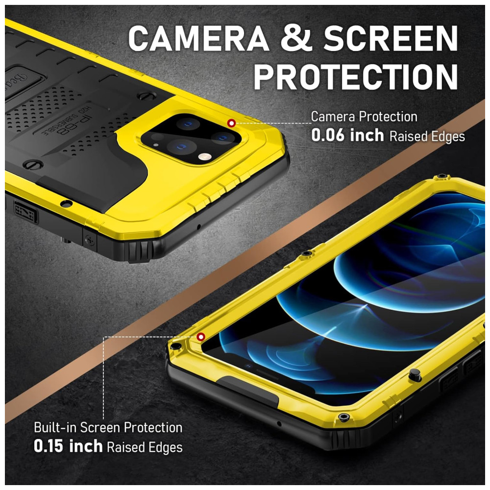 Capinha Compatível com iPhone 12 pro Max a Prova d com Vidro Temperado Amarela BEASYJOY Amarelo
