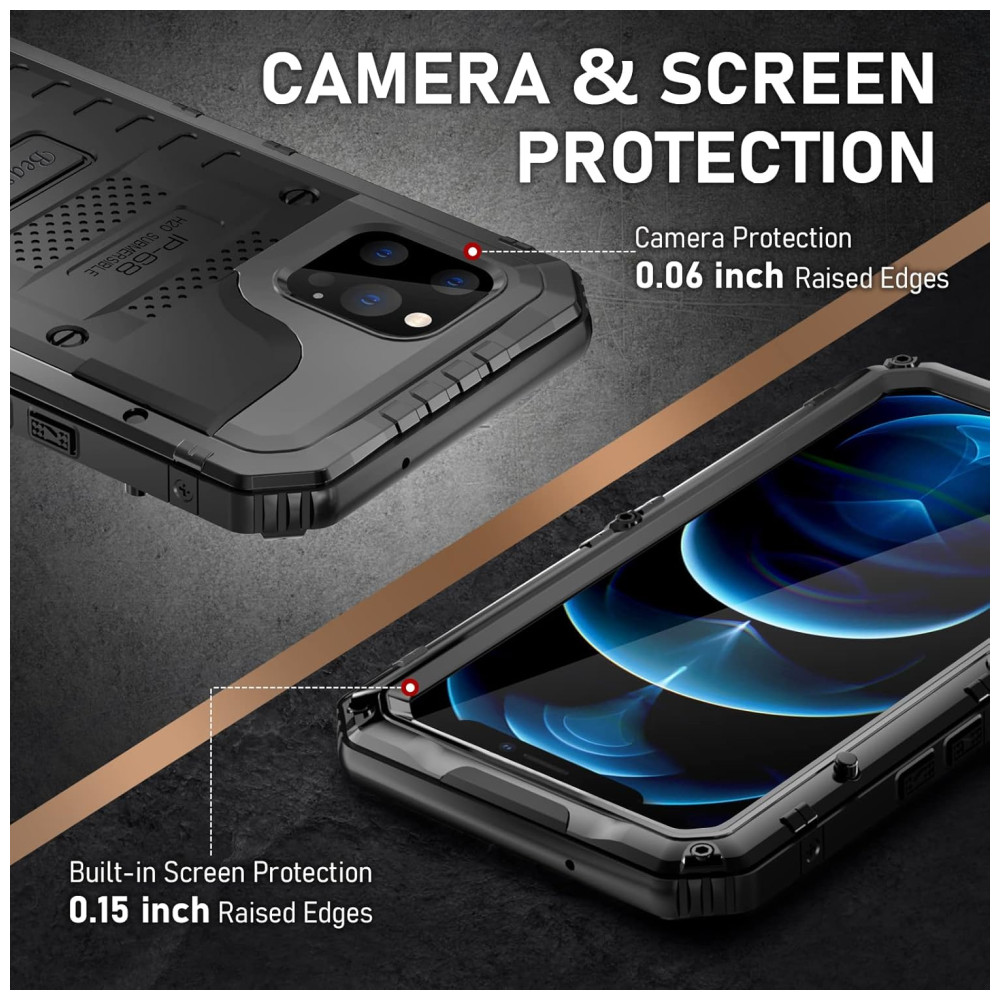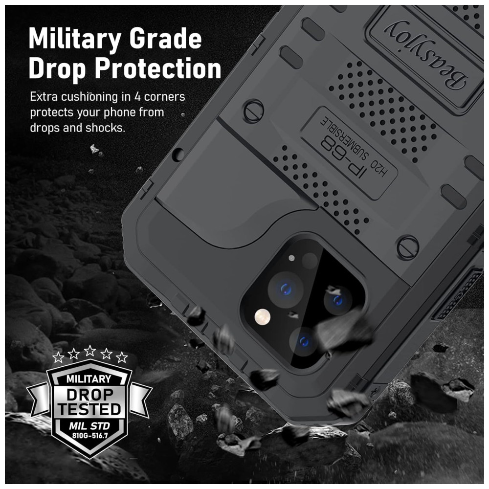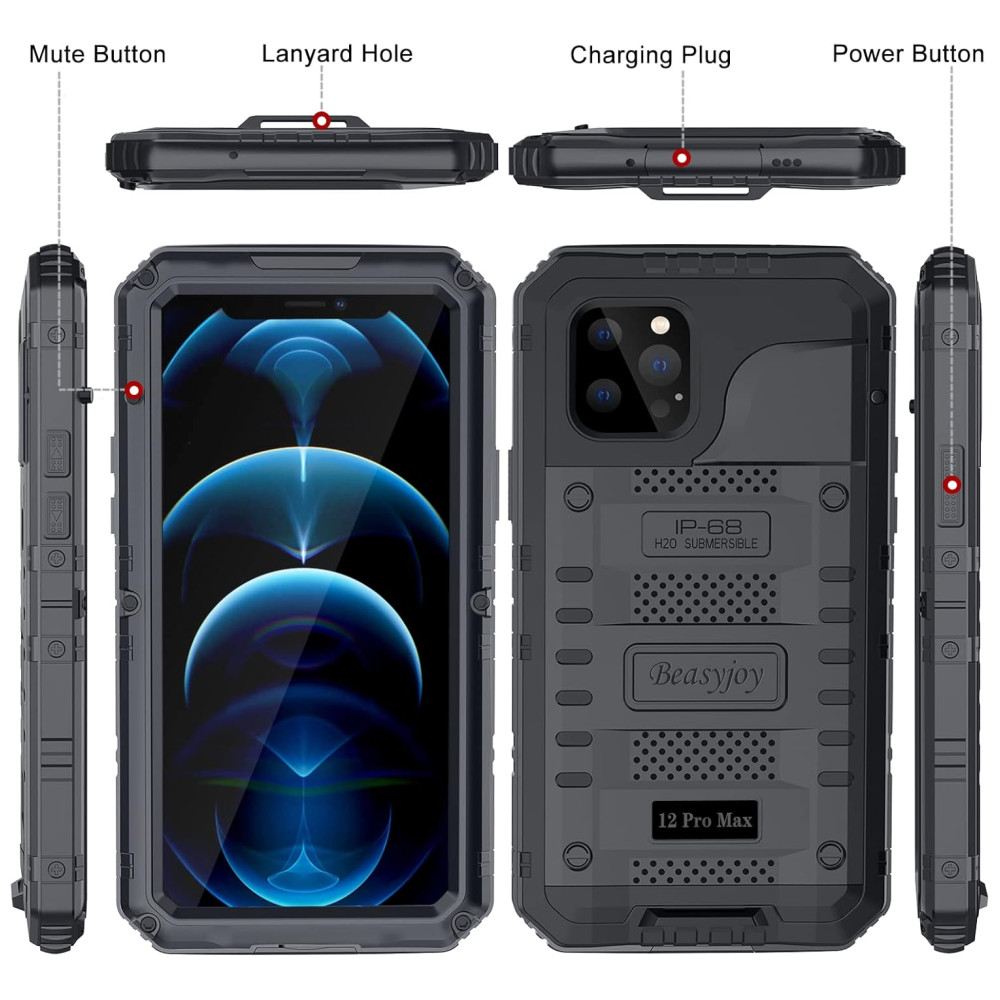 Capinha Compatível com iPhone 12 pro Max a Prova d com Vidro Temperado BEASYJOY Preto
