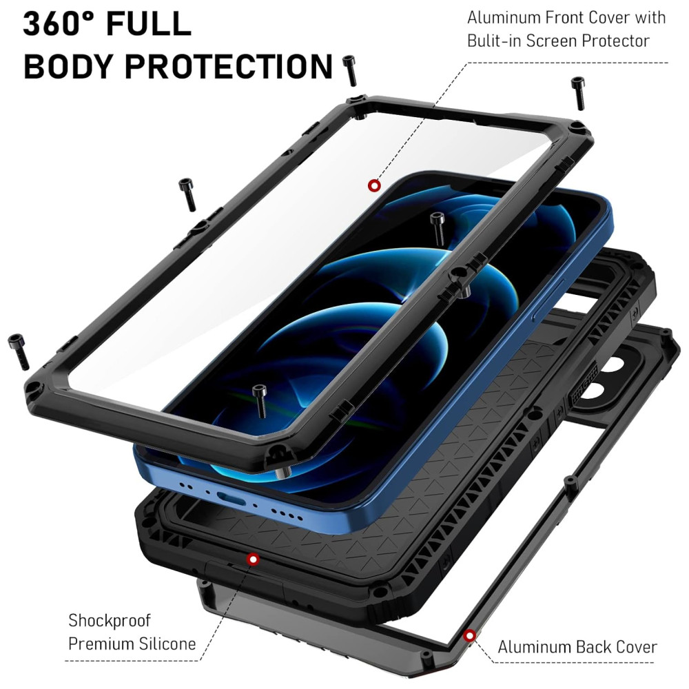 Proteção contra queda de grau militar Projetado com três camadas de TPU de alta qualidade e placa de metal, parafuso no pára choque, que é durável, à prova de choque e à prova de quedas. A estrutura de alumínio e as bordas levantadas fornecem uma forte proteção de corpo inteiro 360 para o seu telefone.