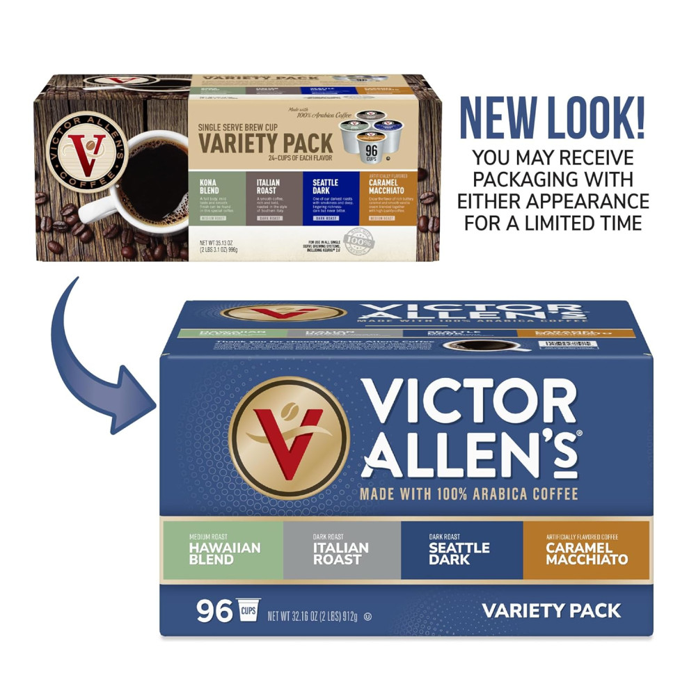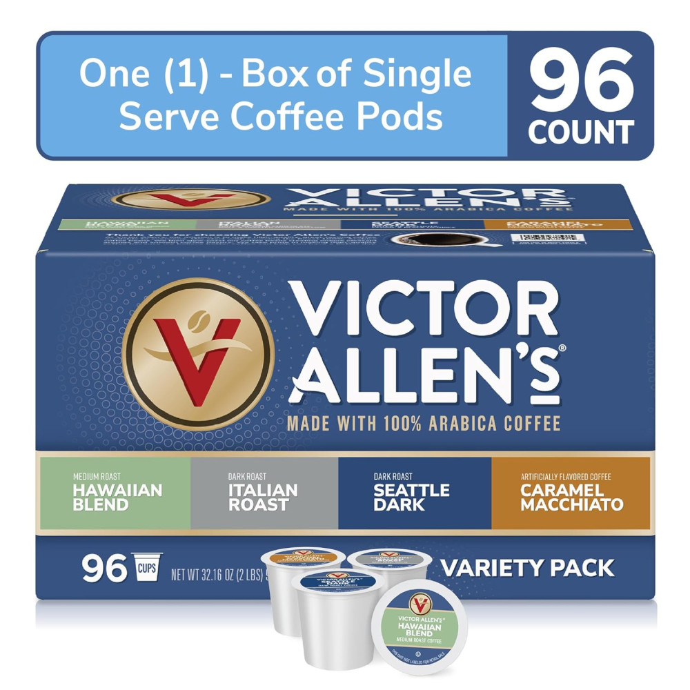 Pacote de variedades de café com sabor e sem sabor para cervejeiros K Cup Keurig 2.0, 96 cápsulas de café de cetim único Victor Victor Allen