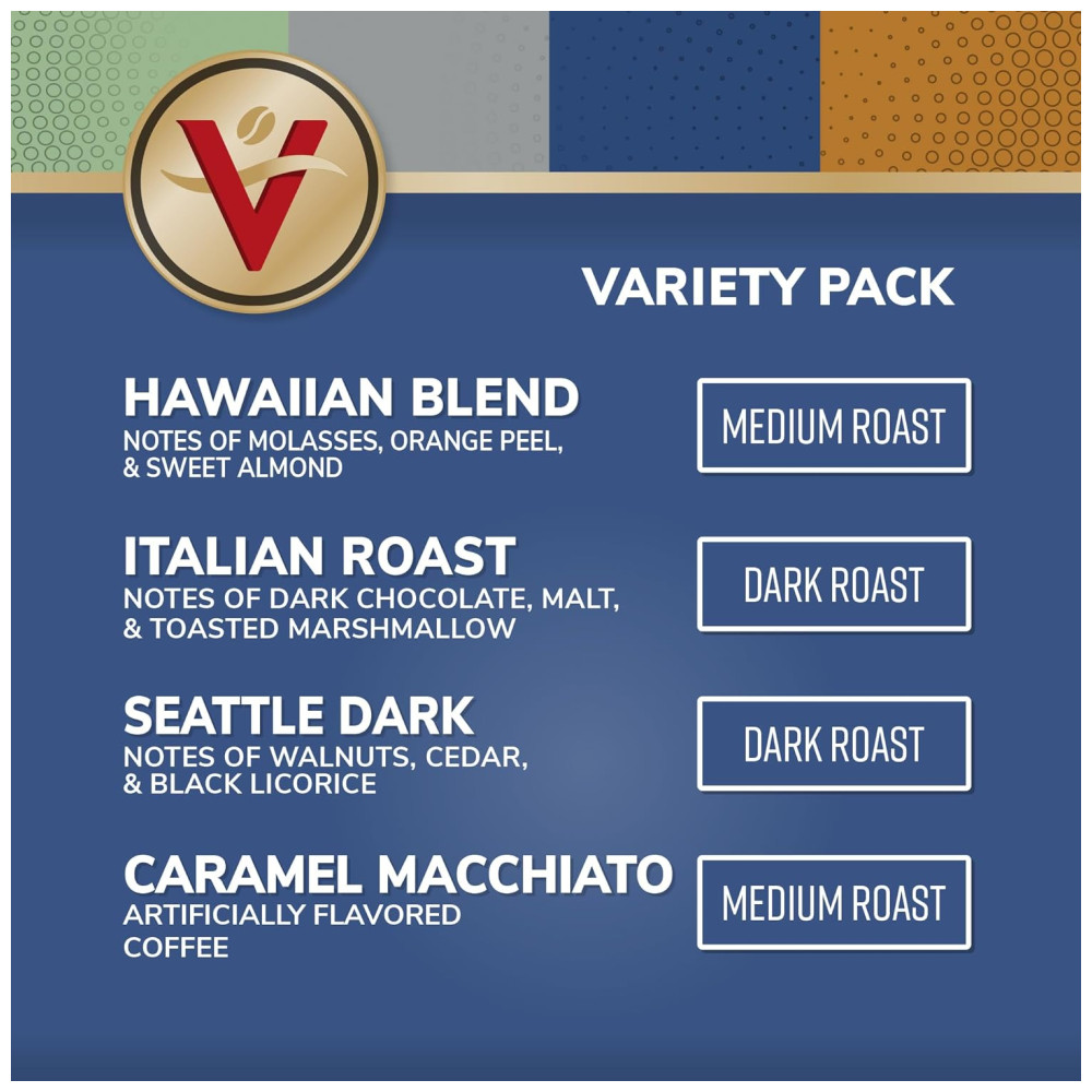 Contém 24 Kona Blend, 24 Italian Roast, 24 Seattle Dark, 24 Caramel Macchiato.