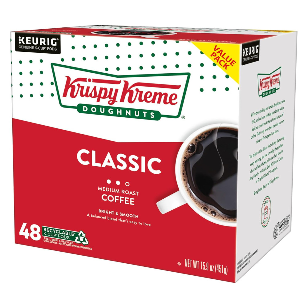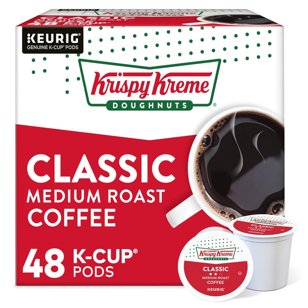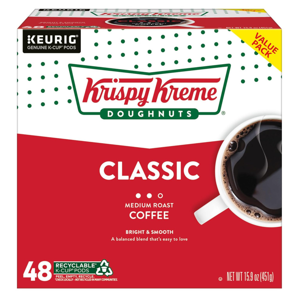 Cápsulas Classic dose única Keurig K Cup Pods café torrado médio 93 g pacote com 48 KRISPY KREME Marrom