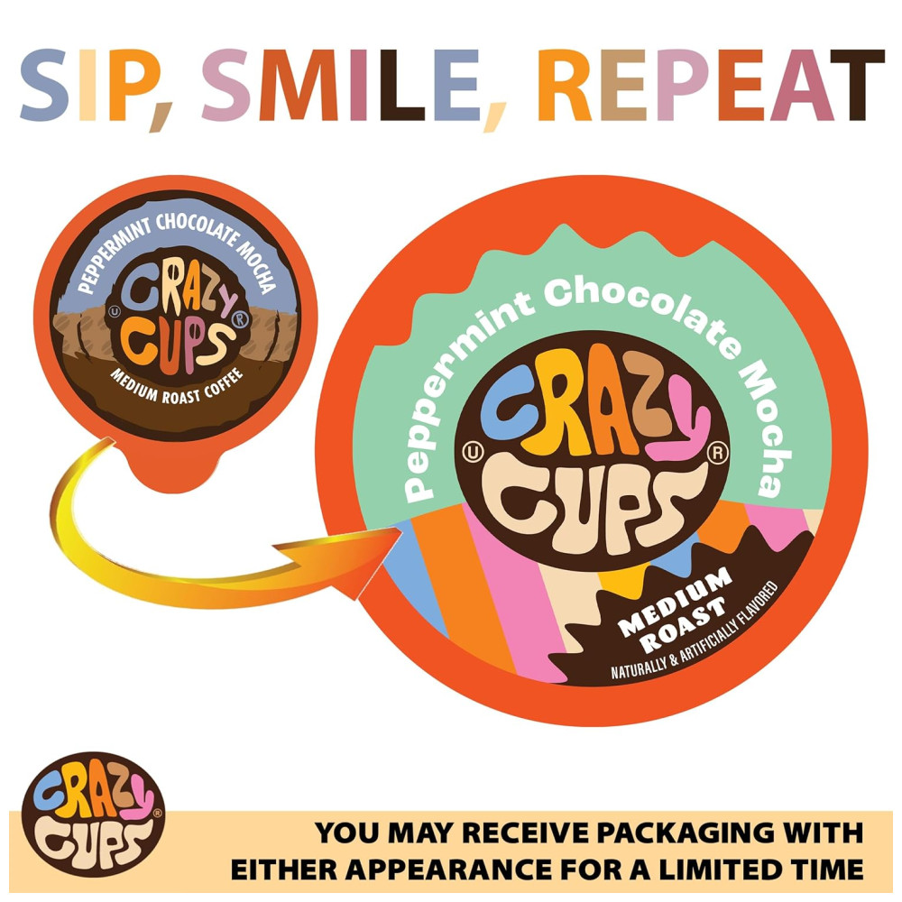 Crazy Cups café com sabor para máquinas Keurig K Cup, Mocha de chocolate com menta, bebidas quentes ou geladas, 80 doses individuais, cápsulas recicláveis
