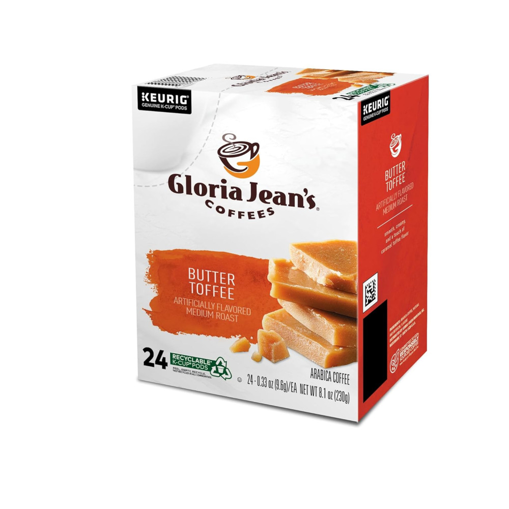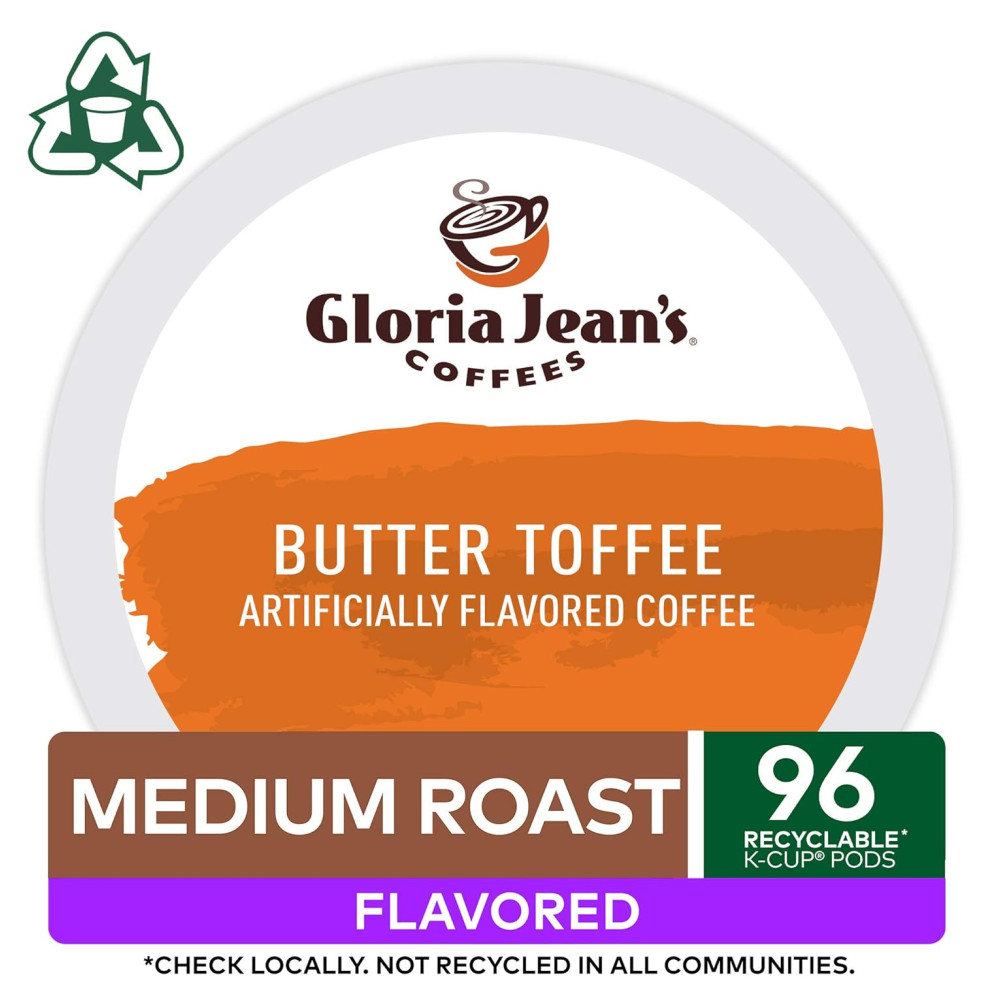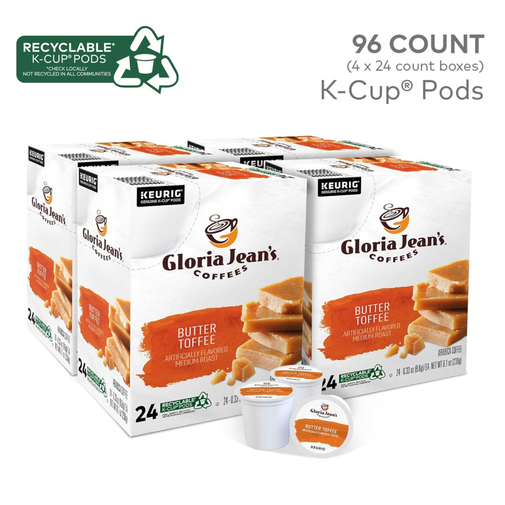Cafés Gloria Jeans Butter Toffee, cápsulas Keurig K Cup de serviço único, café torrado médio com sabor, 96 Count