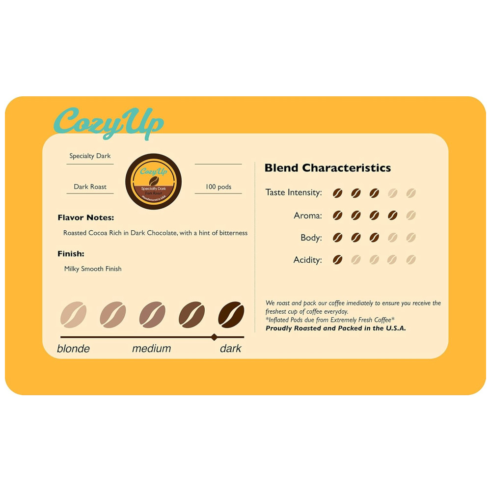 CozyUp Especialidade de 100 unidades de café de Blends com Torras Escuras para Keurig K Cup, Torra Escura