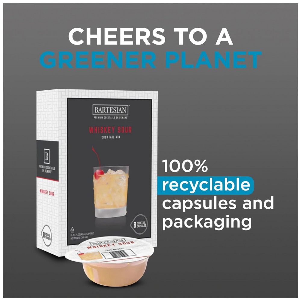 Você pode desfrutar coquetéis com qualidade de bar sem se preparar para impactar negativamente o planeta por cada caixa de cápsula é feita com materiais recicláveis