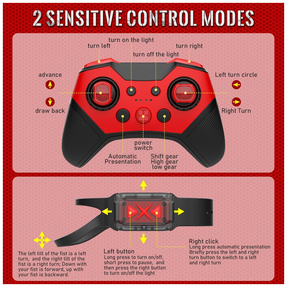 Carrinho Anfíbio de Controle Remoto com Luzes para Crianças de 6 a 12 Anos – 4×4 à Prova d’Água Sensor de Gestos Controle Manual – 36cmSAUFTTI