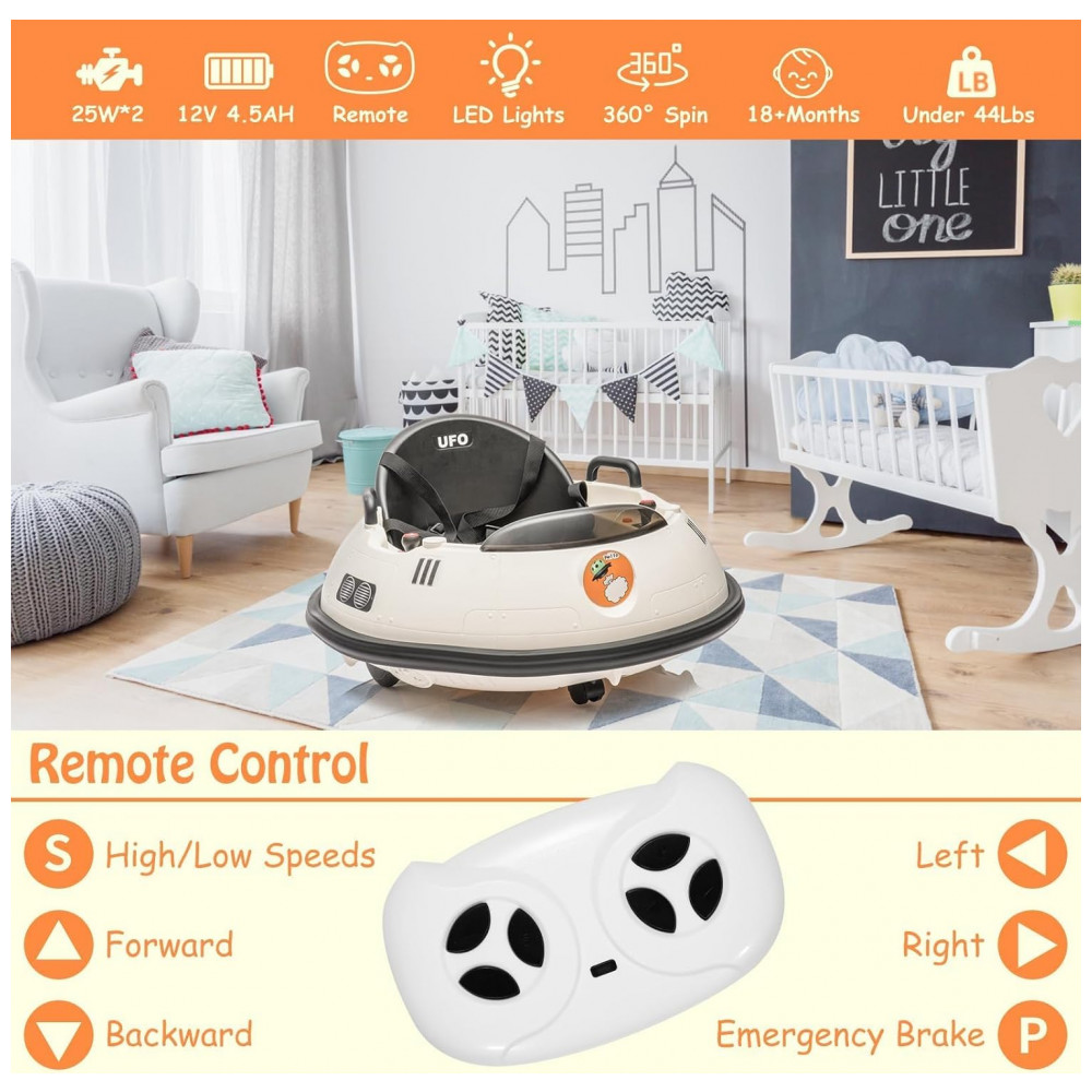 Carrinho bate-bate elétrico infantil 12V branco PALBY’S com controle remoto e giro 360°
