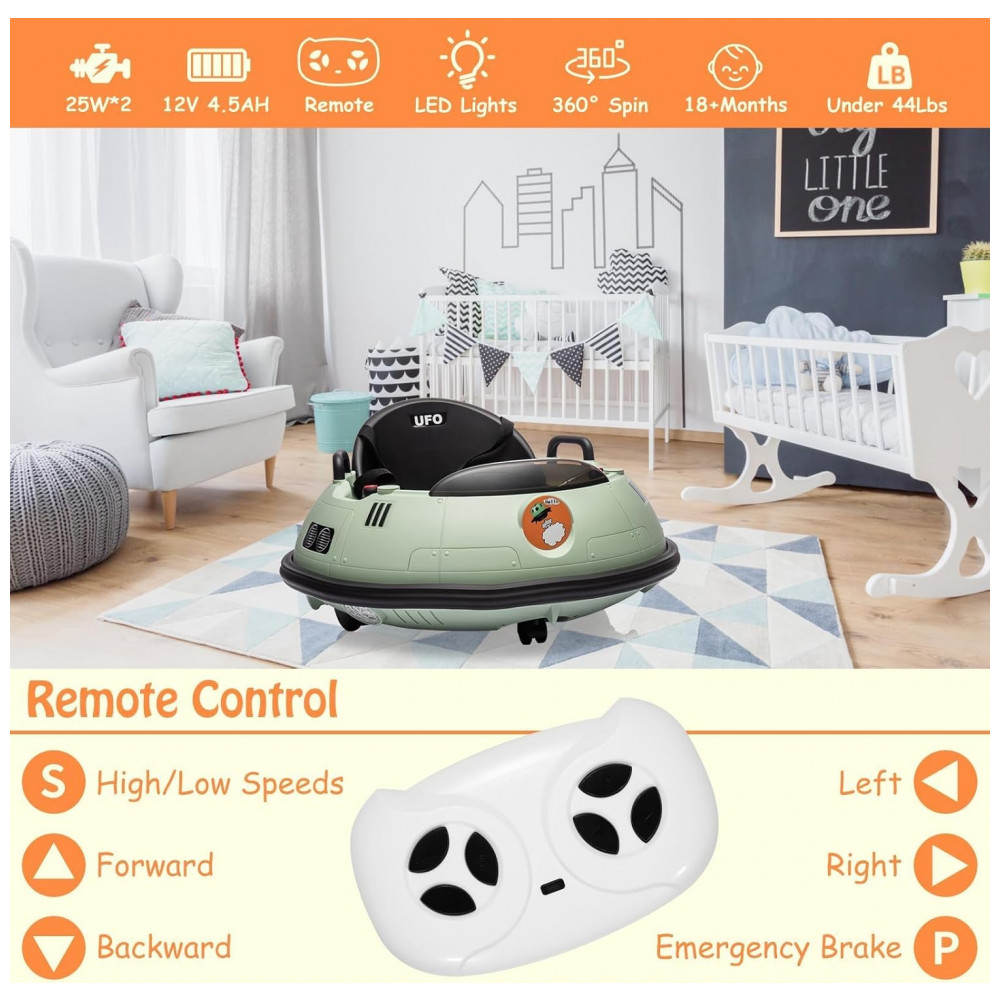 Carrinho bate-bate elétrico infantil 12V verde PALBY’S com controle remoto e giro 360°