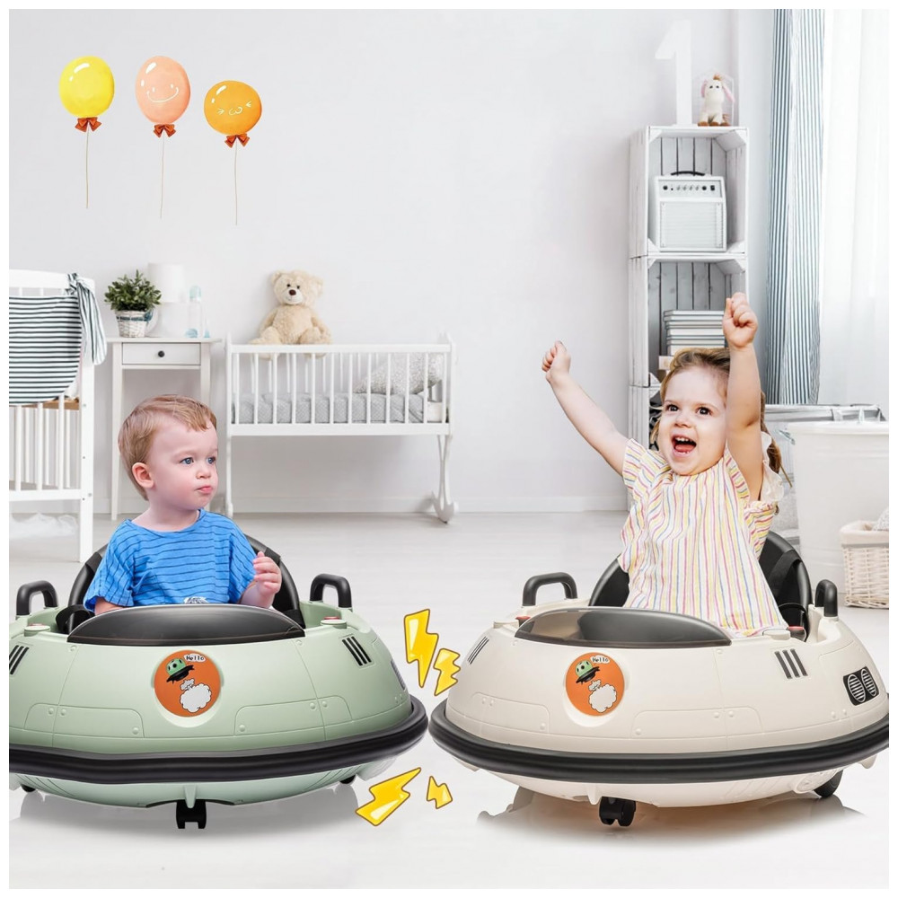 Carrinho bate-bate elétrico infantil 12V PALBY’S, desenvolvido para crianças a partir de 18 meses, com estrutura circular, cinto de segurança e faixa de proteção macia ao redor da base para amortecer toques e colisões leves durante a brincadeira. O sistema de rodas com giro de 360 graus permite manobras em todas as direções, com partida suave para maior conforto e controle em superfícies internas planas.