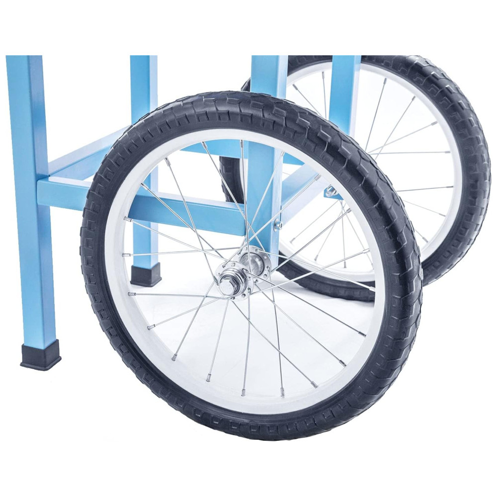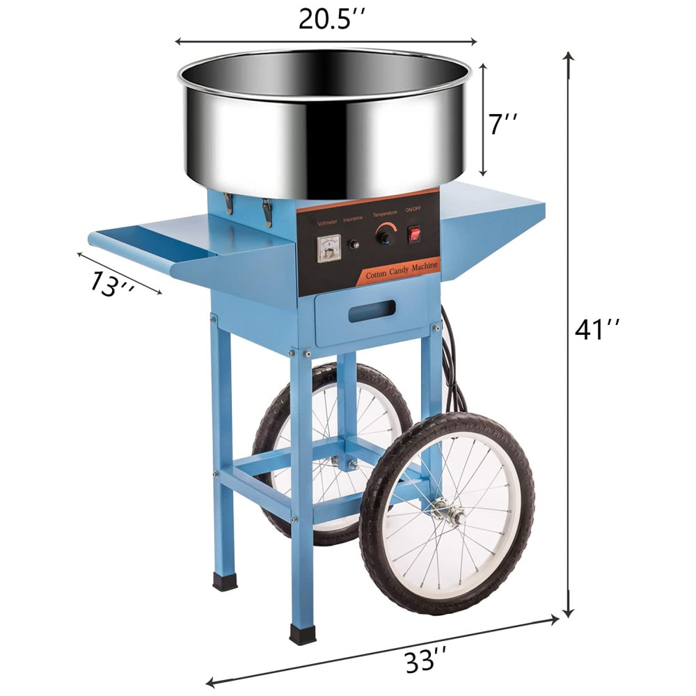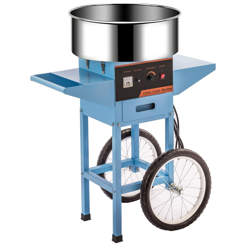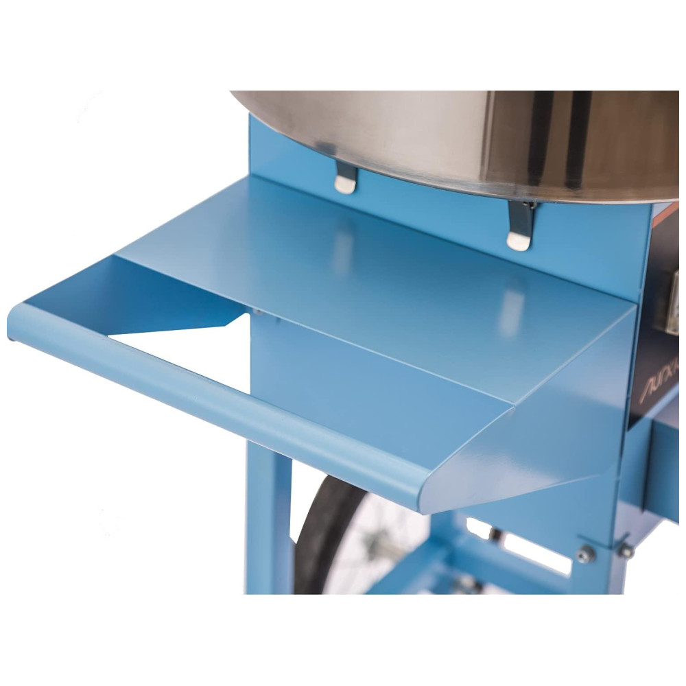 Este algodão doce é convenientemente móvel com o carrinho incluído que facilita o transporte.