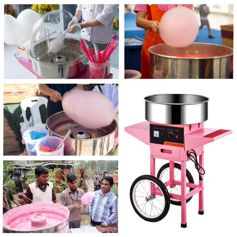 Carrinho de Algodão Doce Elétrico Profissional em Aço Inoxidável 110V 1000W TIANAI Rosa