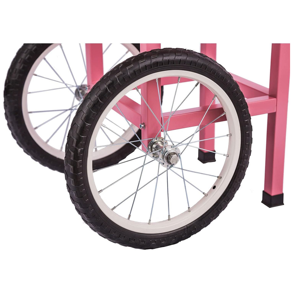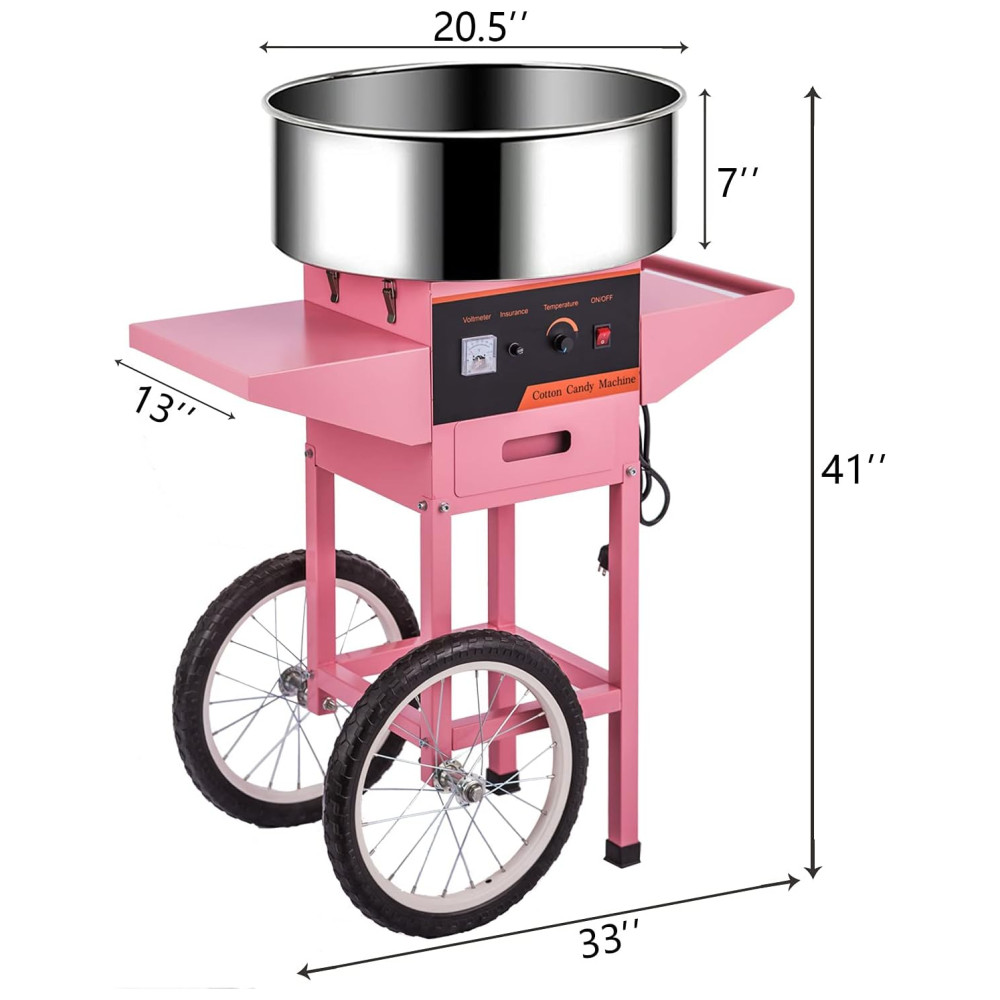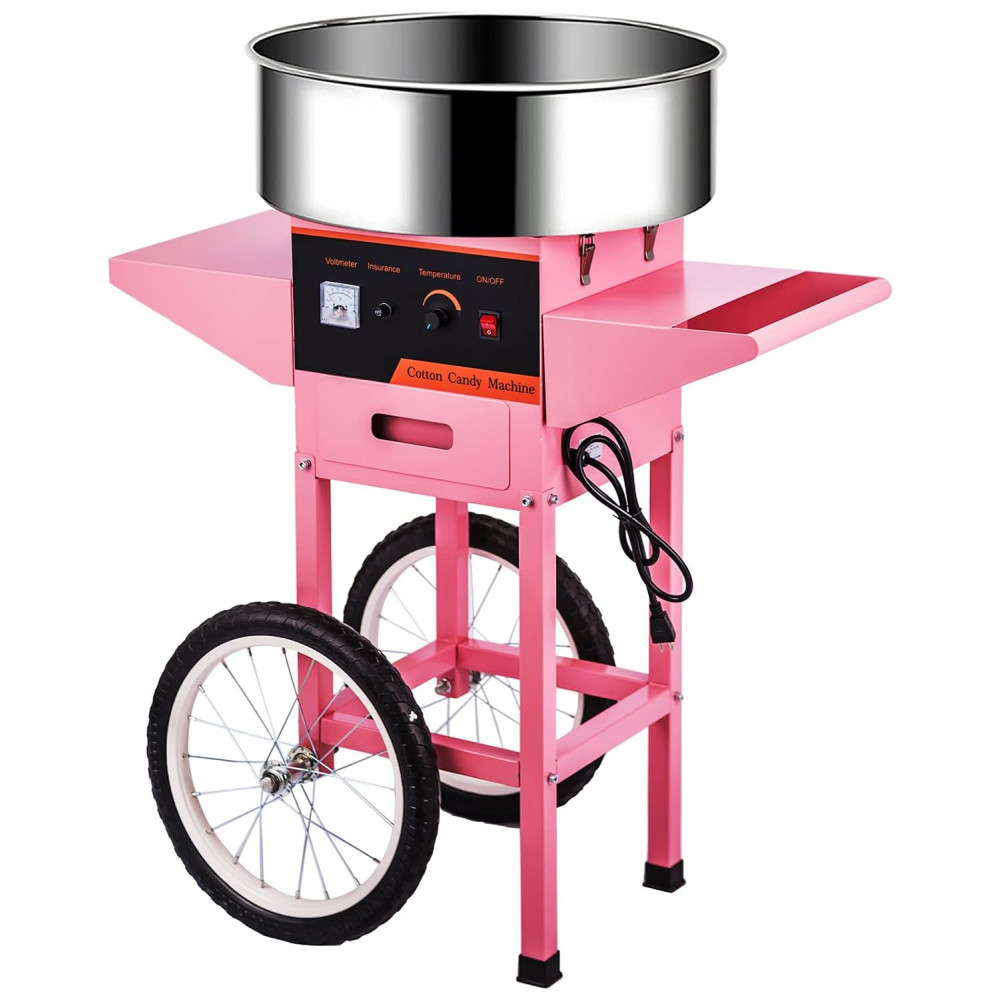Este algodão doce é convenientemente móvel com o carrinho incluído que facilita o transporte.