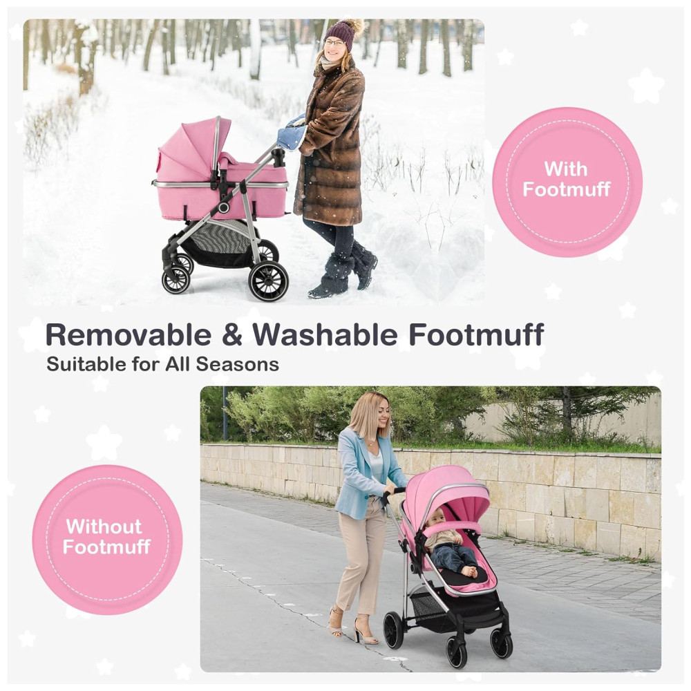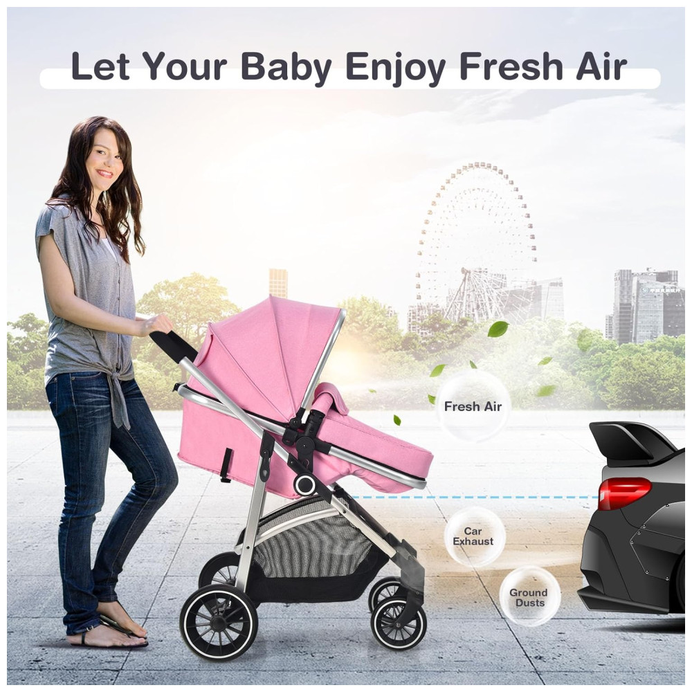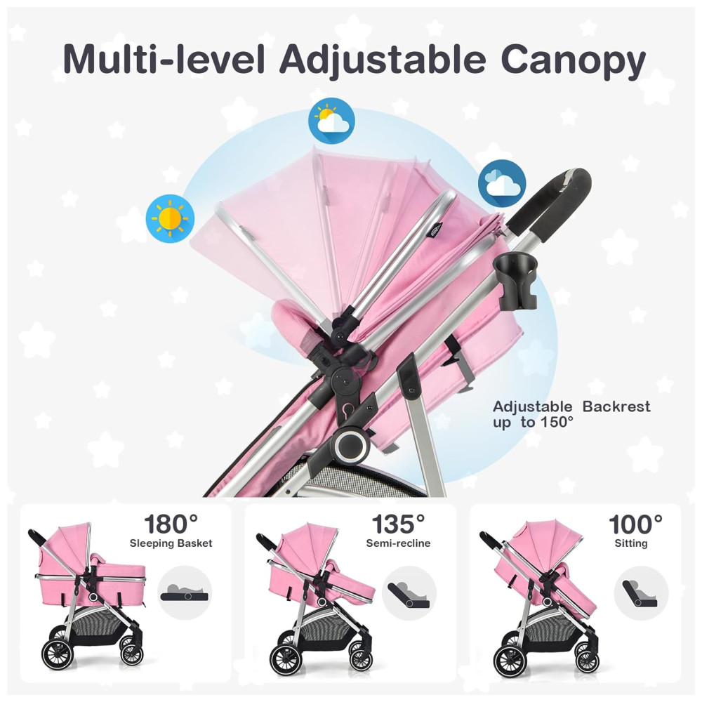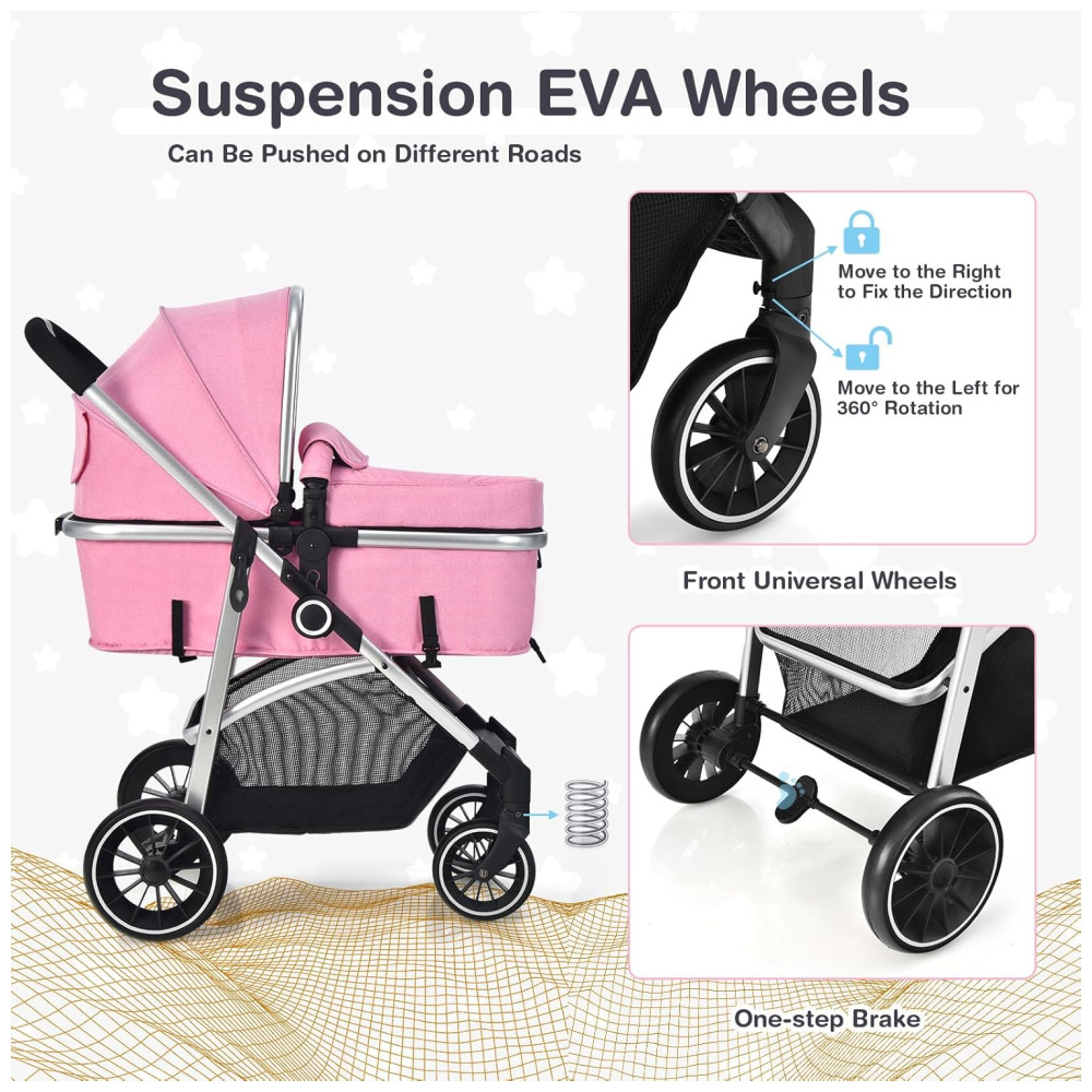 Carrinho de Bebê 2 em 1 com Assento Reversível e Encosto Ajustável 0 a 36 Meses BABY JOY Rosa