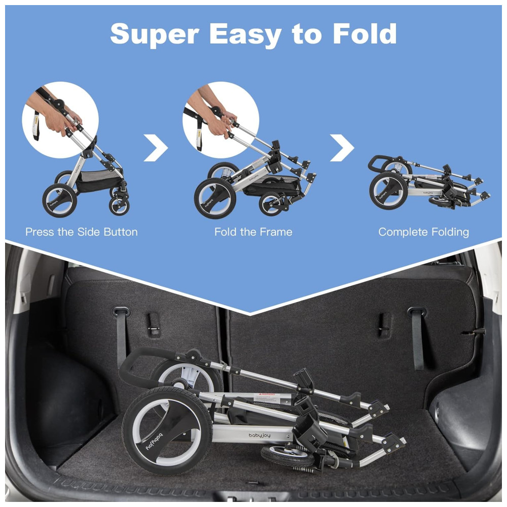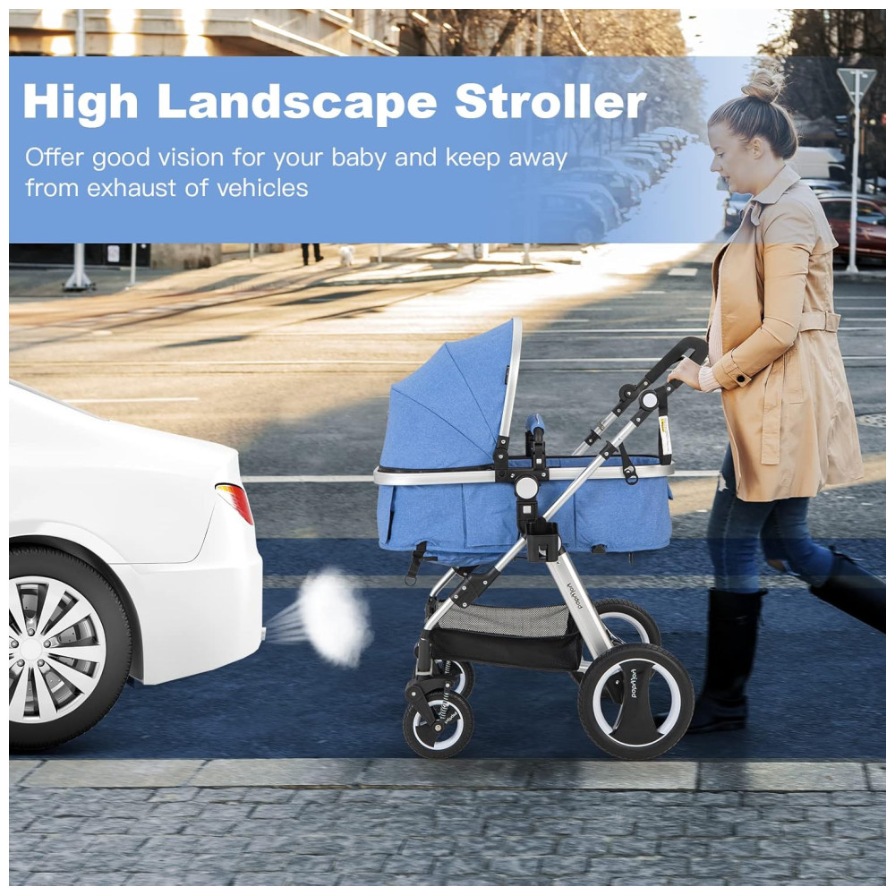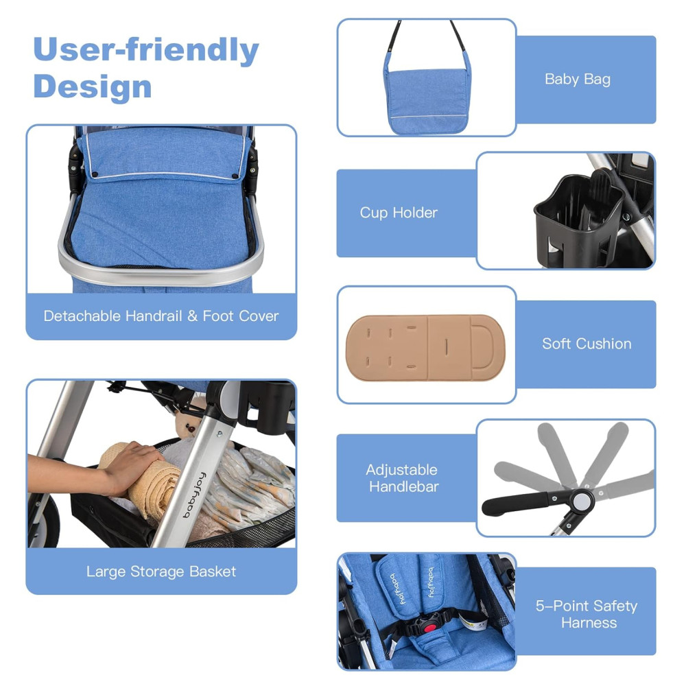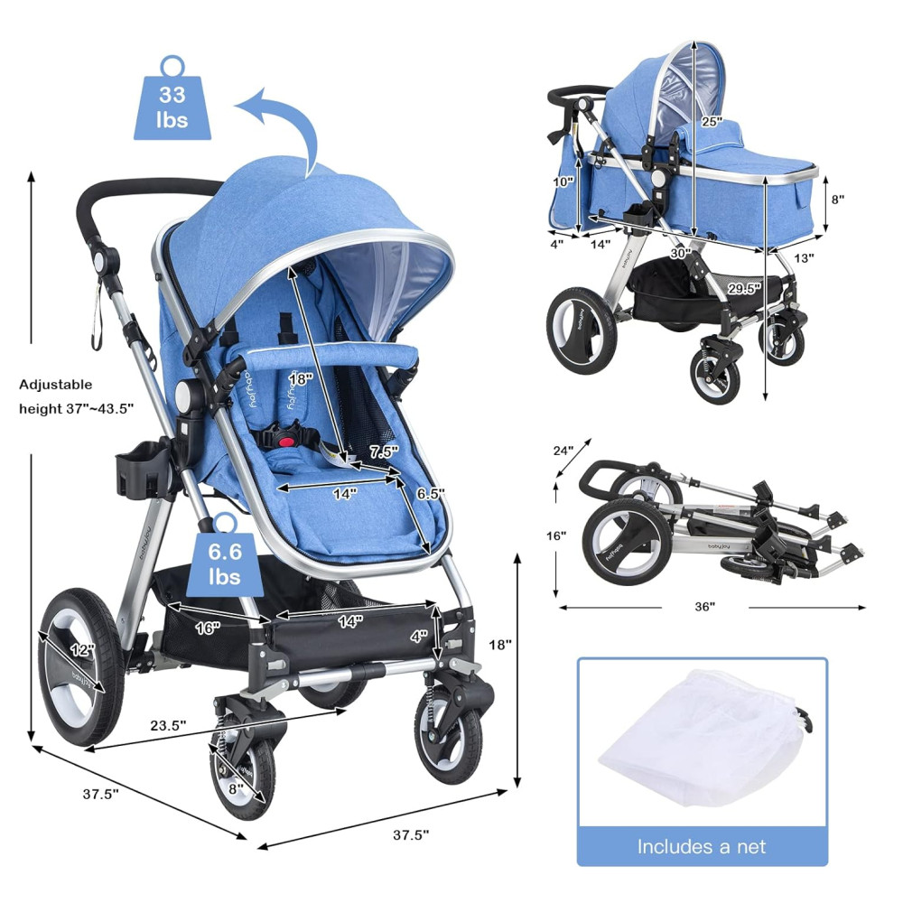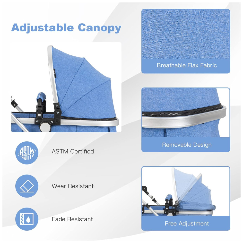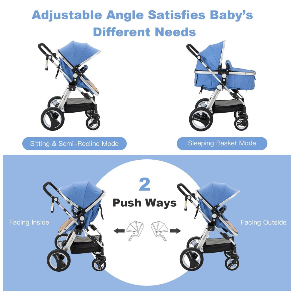 Carrinho de Bebê 2 em 1 com Inclinação Conversível e Suporte para Copo BABY JOY Azul