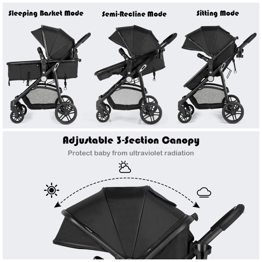 CONFORTÁVEL E ADAPTÁVEL Este carrinho possui encosto e alça ajustáveis. Você pode ajustar a parte de trás do carrinho para atender aos diferentes requisitos do seu bebê, seja para deitar, sentar ou dormir. O assento confortável com arnês de segurança de 5 pontos e almofada de dormir ajustável em inclinação, oferece conforto e segurança para o seu bebê. Além disso, a alça de empurrar tem conversões bidirecionais, permitindo que você possa optar por enfrentar o seu bebê conforme sua conveniência.