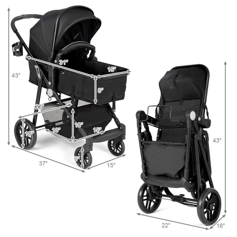 Carrinho de Bebê 2 em 1 com Suspensão e Porta Copos Baby Joy Preto