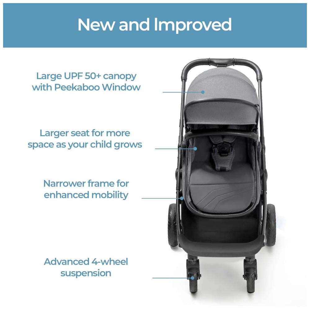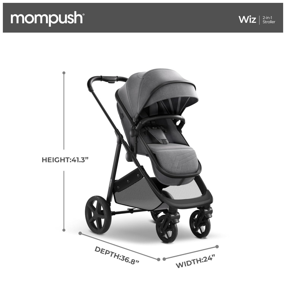 Carrinho de Bebê 2 em 1 Mompush Wiz com Assento Reversível Cinza