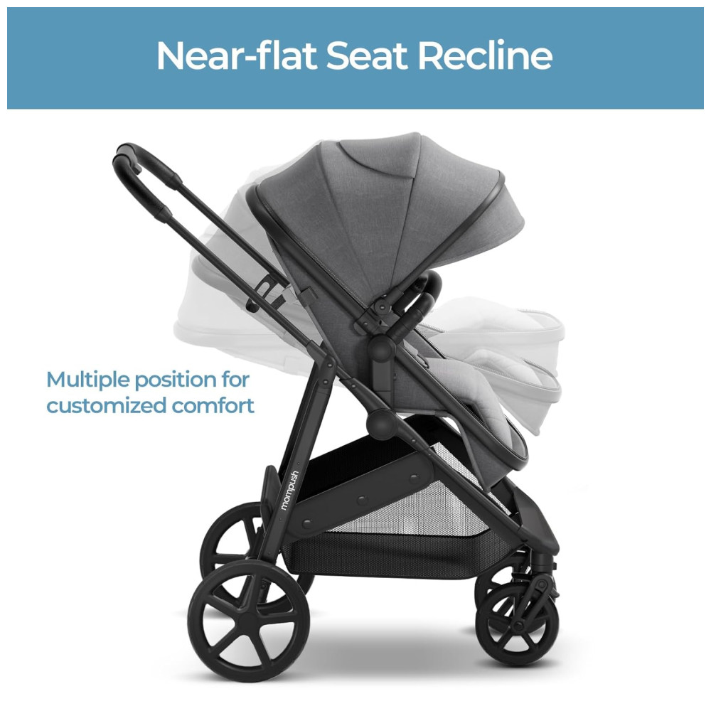 Espaço para crescer Use desde o nascimento como um suporte de assento de carro ou sistema de viagem compatível com a maioria dos principais assentos de carro Maxi Cosi e Nuna, adaptador de assento de carro VENDIDO SEPARADAMENTE. Compre um carrinho de bebê que se transforma para combinar com o surgimento de seus pequenos membros. Este carrinho Mompush oferece um passeio durante o desenvolvimento inicial. Você pode ir do carrinho ao berço em minutos, com reclinação total para um passeio confortável de recém nascido