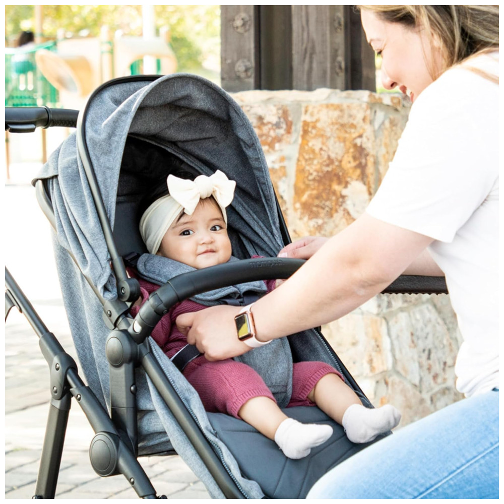 Personalize seu posicionamento de acordo com seu humor para aquele dia com o assento reversível nestes carrinhos para recém nascidos. Vá de frente para os pais para maior segurança, ou voltado para fora para ção visual, este moderno carrinho de bebê permite que você decida