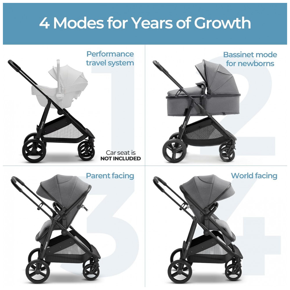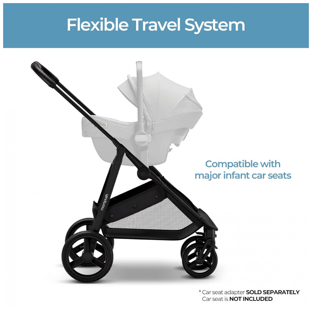 Espaço para crescer Use desde o nascimento como um suporte de assento de carro ou sistema de viagem compatível com a maioria dos principais assentos de carro Maxi Cosi e Nuna, adaptador de assento de carro VENDIDO SEPARADAMENTE. Compre um carrinho de bebê que se transforma para combinar com o surgimento de seus pequenos membros. Este carrinho Mompush oferece um passeio durante o desenvolvimento inicial. Você pode ir do carrinho ao berço em minutos, com reclinação total para um passeio confortável de recém nascido