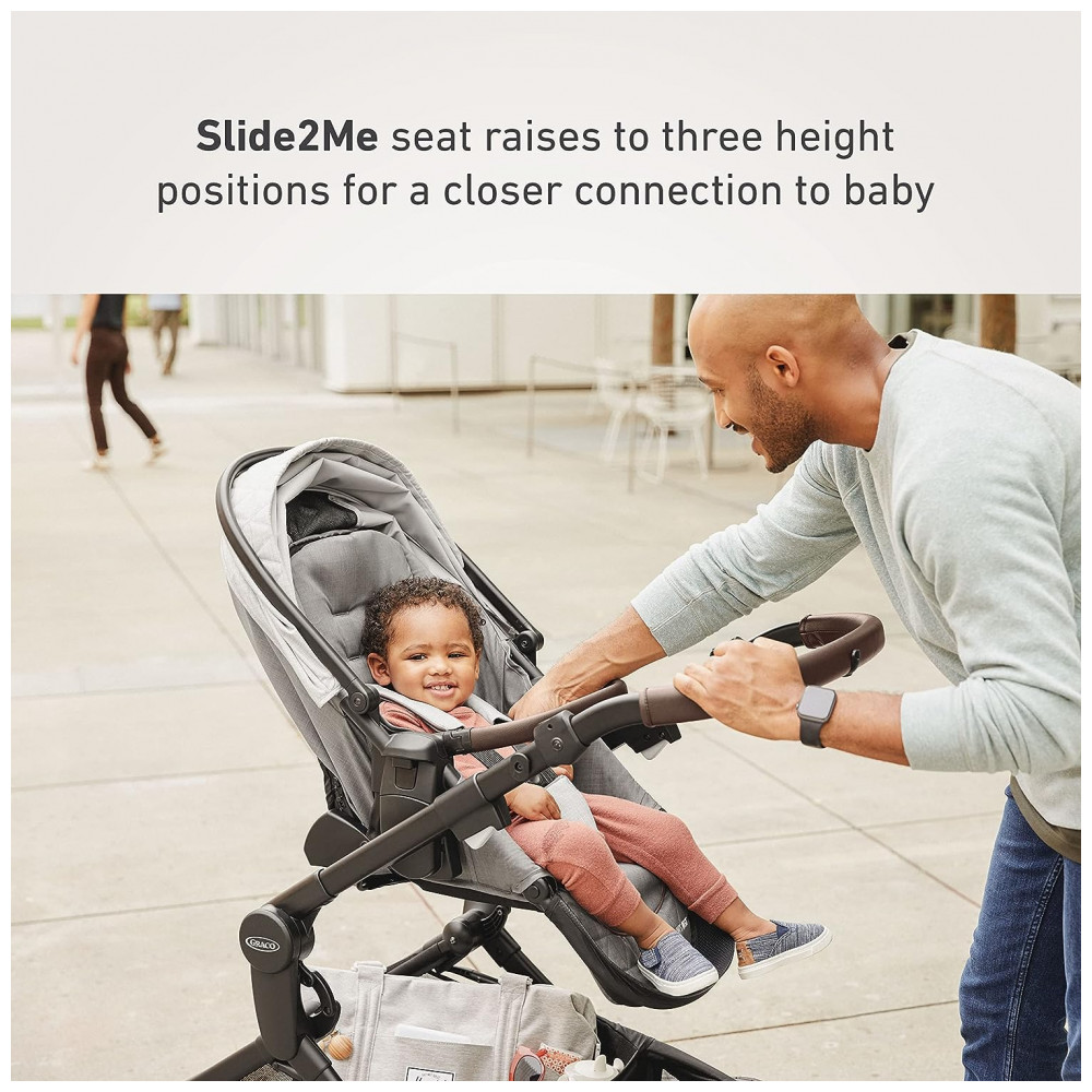 Desfrute de sorrisos cara a cara, elevando o assento Slide2Me, o assento do carro infantil ou leve o berço para uma das 3 posições de altura para encontrar o passeio certo à medida que o bebê cresce