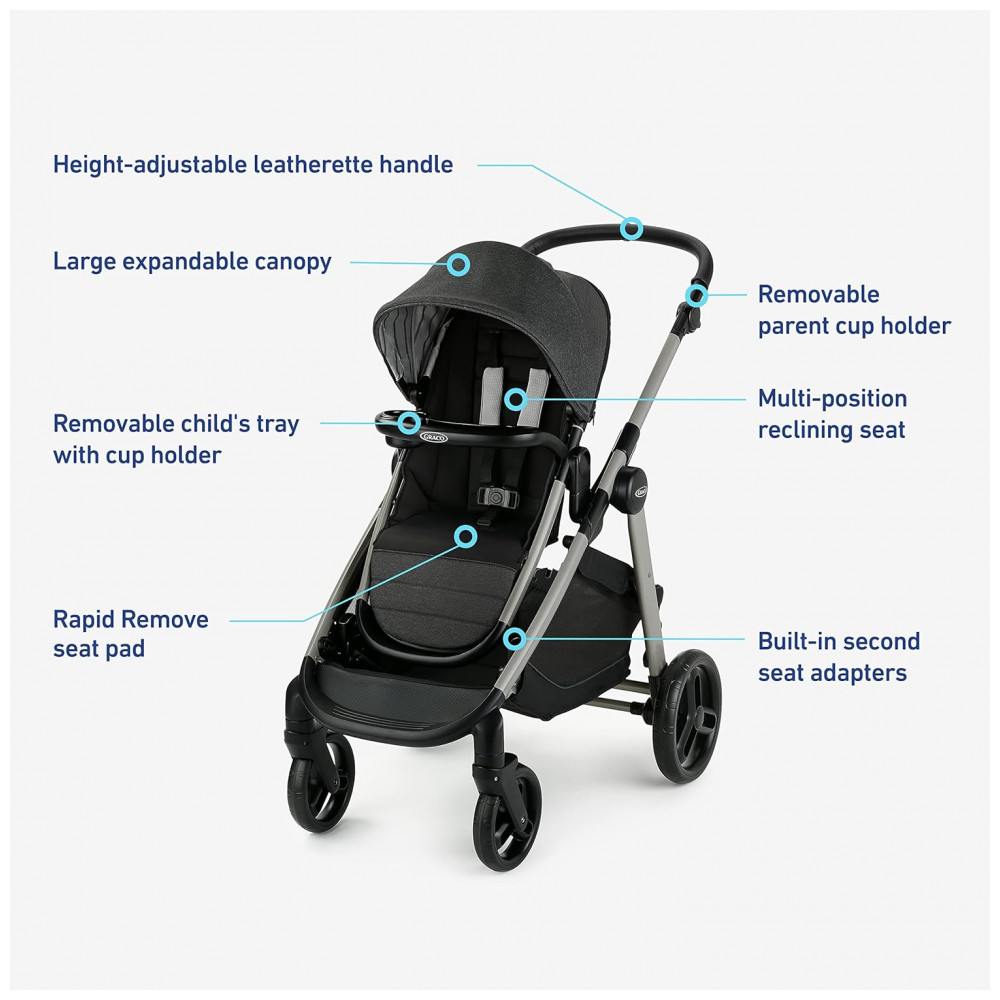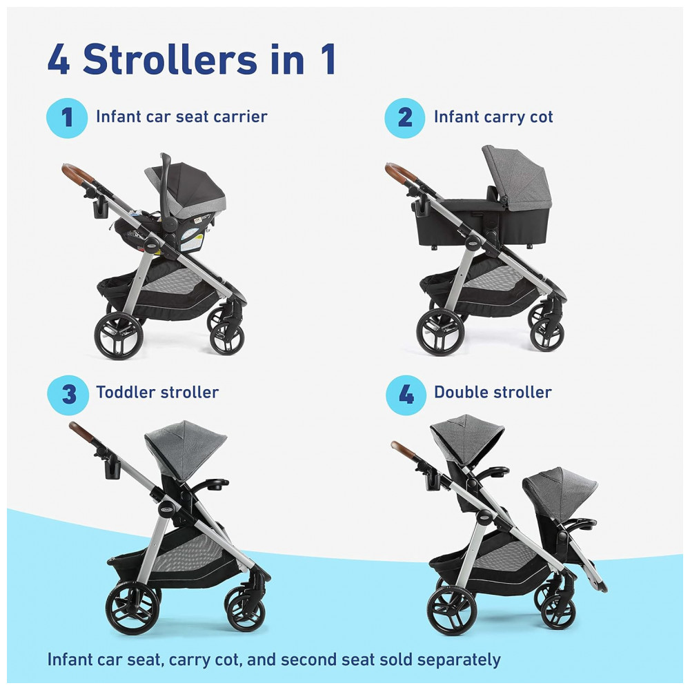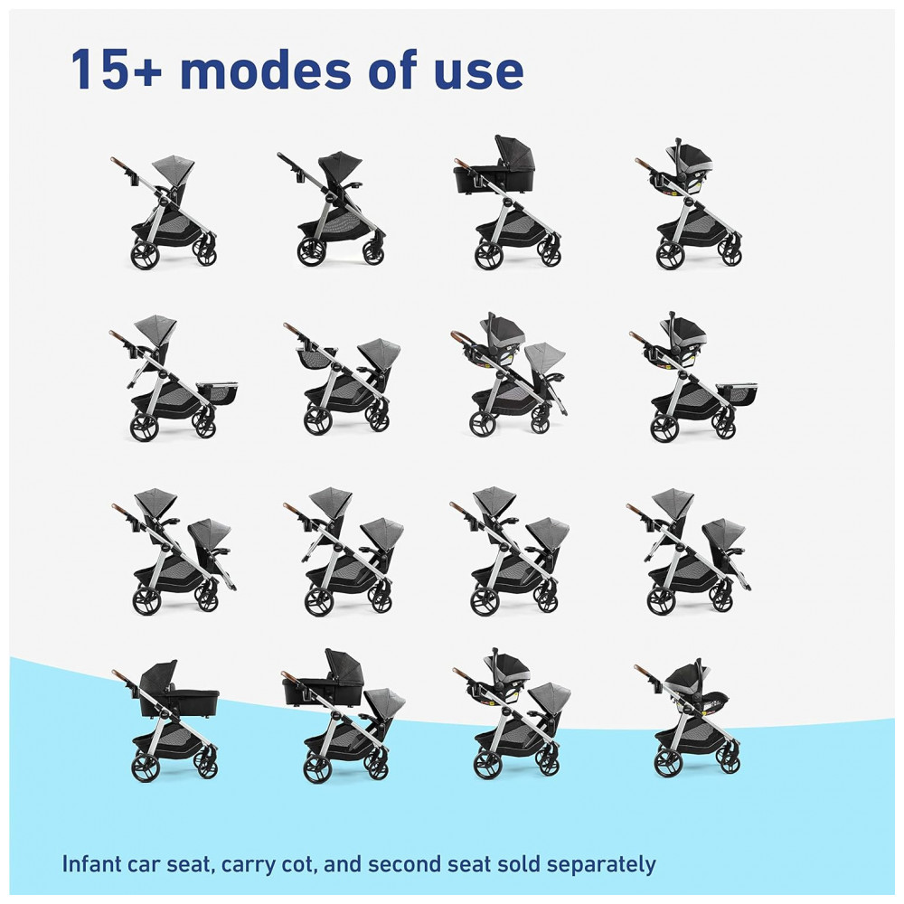 O carrinho Graco Modes Nest2Grow cresce de um único para um carrinho duplo com a adição de um assento de carro infantil, berço ou segundo assento todos vendidos separadamente. É o único carrinho que você precisa para uma família em crescimento, com mais de 15 maneiras de andar.