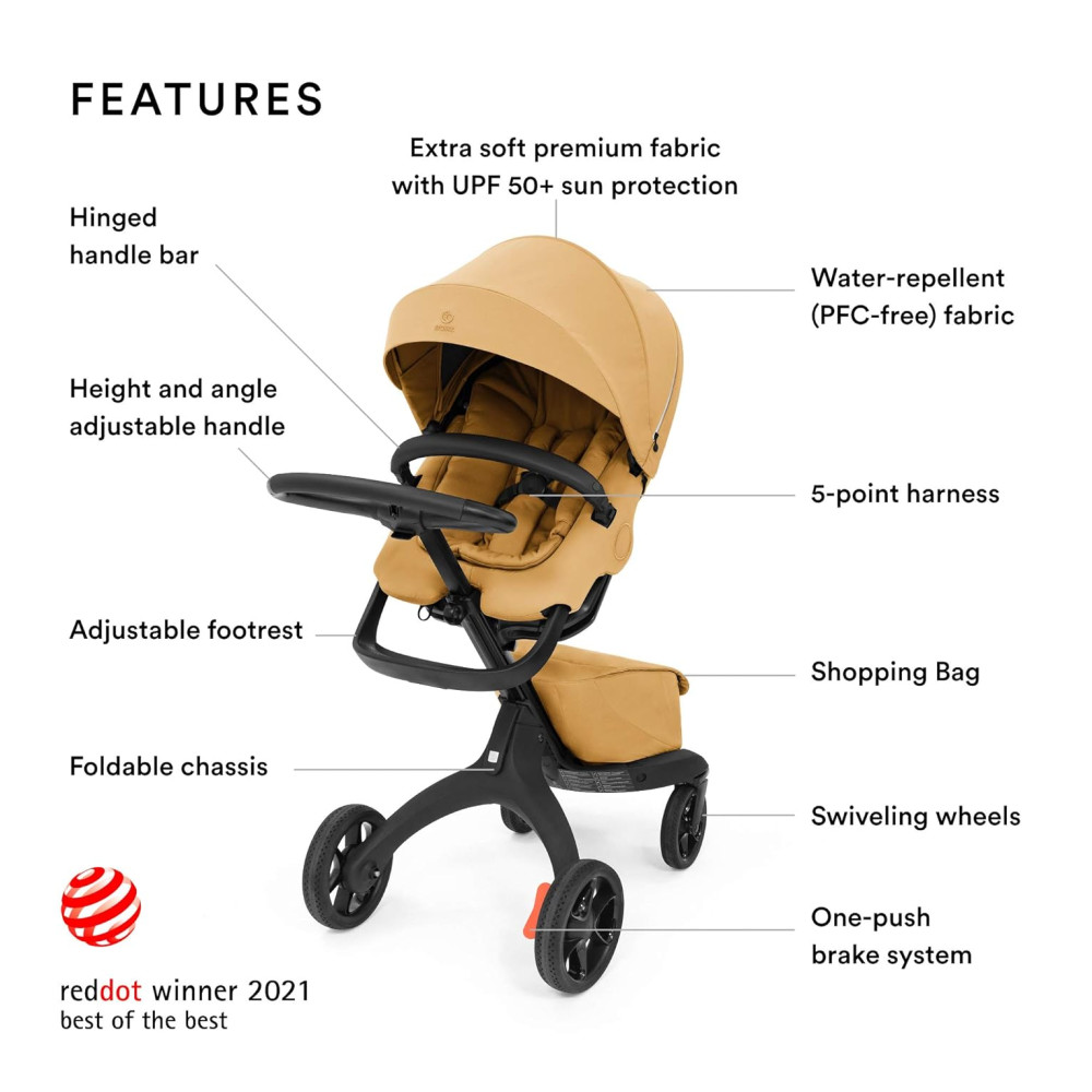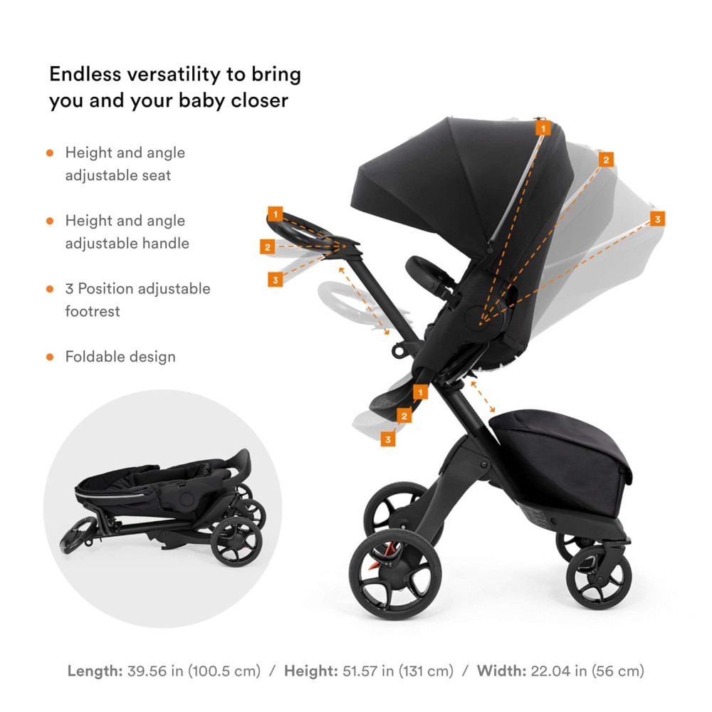 FAÇA SEU PRÓPRIO Com acessórios para carrinhos de bebê como trocador, porta copos e bandeja para lanches, você pode personalizar o Stokke Xplory X para uso com crianças de recém nascidos a bebês até um limite de 21 kg. Além disso, escolha entre uma variedade de cores