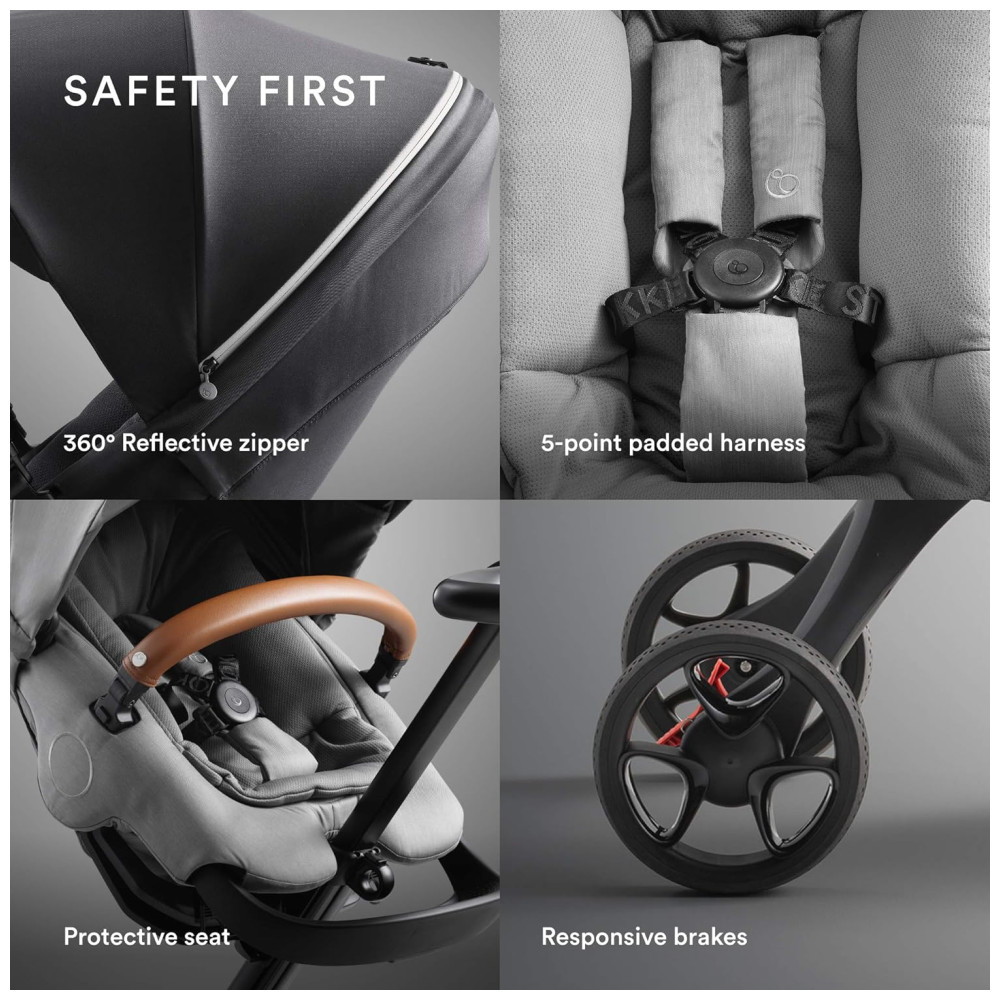 SEGURANÇA EM PRIMEIRO LUGAR Protetor de cima para baixo, nosso carrinho possui um assento rígido, um arnês de 5 pontos, um zíper refletivo e um sistema de freio de um toque para resposta rápida. Testado internamente e com instituições externas.