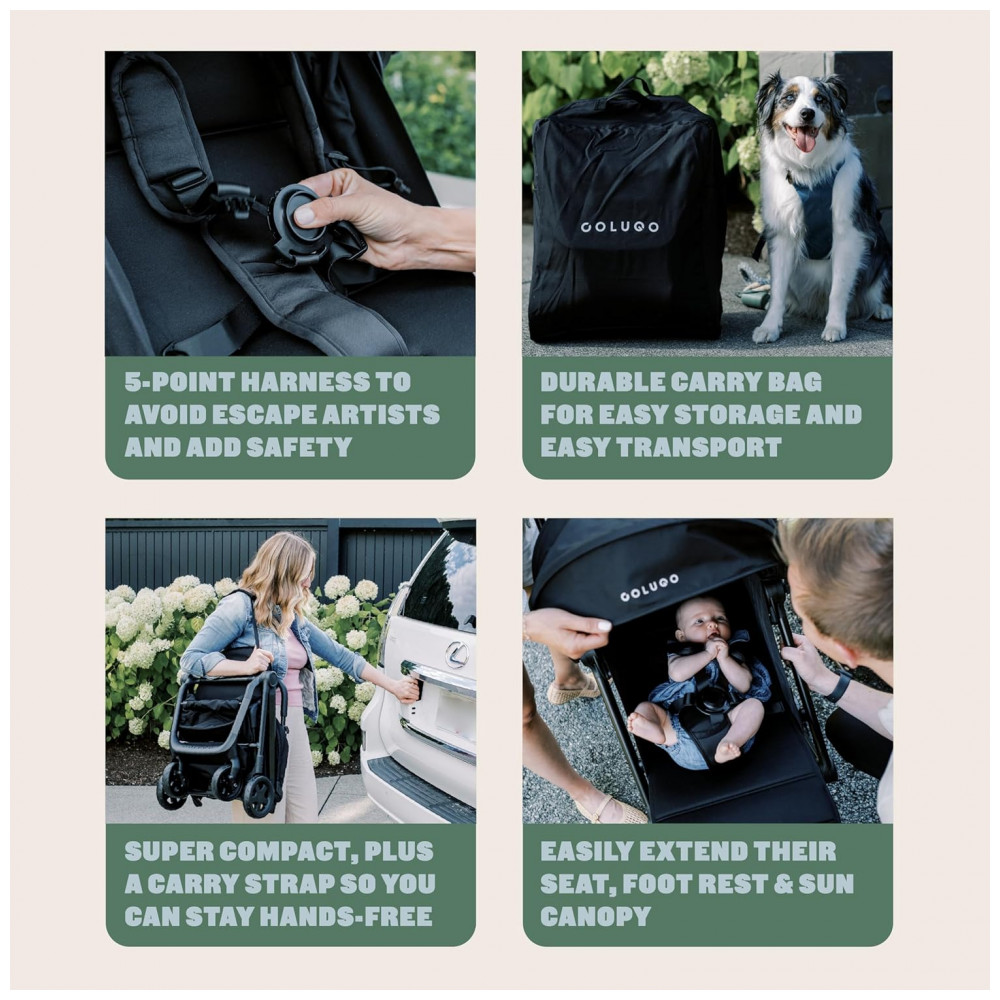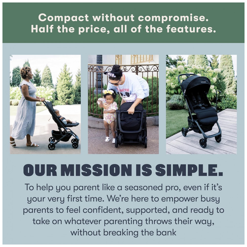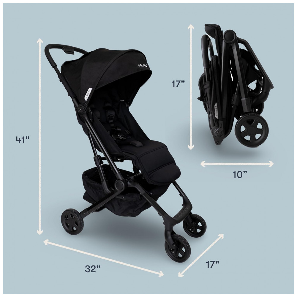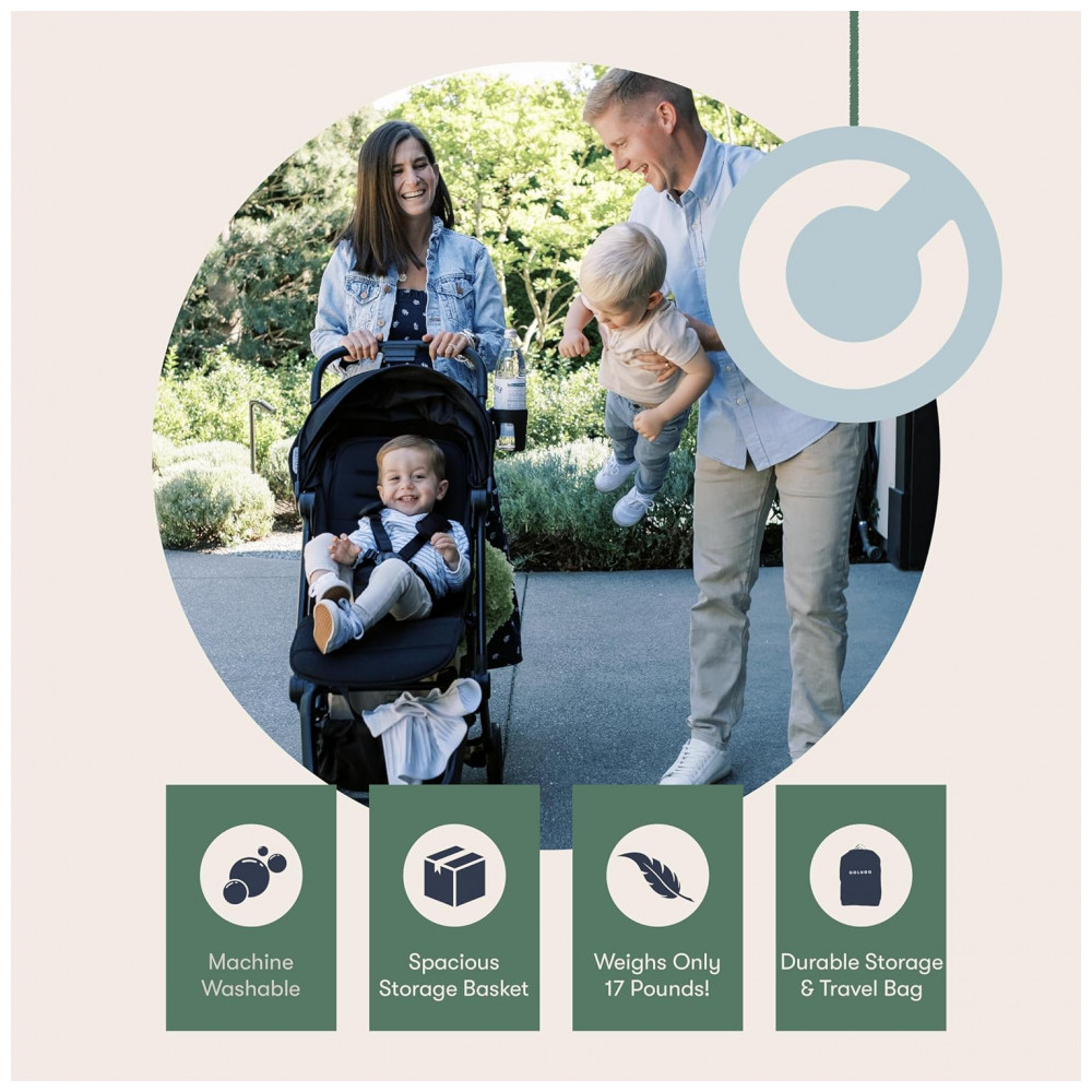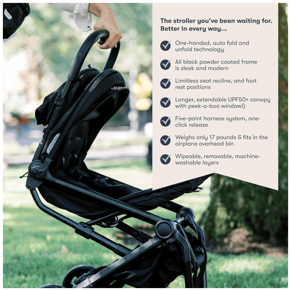 Carrinho de Bebê Colugo Compact+ Preto – Dobrável Ultraleve Dobragem Automática 1 Mão Reclinação Ilimitada Capota UPF 50+ Bolsa Mochila