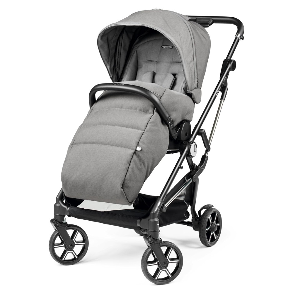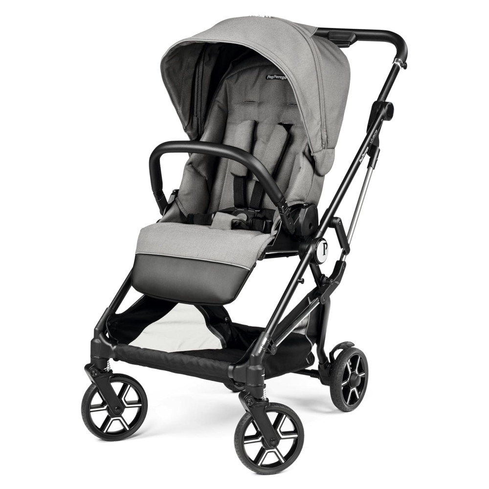Carrinho de Bebê com Armazenamento Embaixo Assento Confortável e Reclinável Peg Perego Cinza