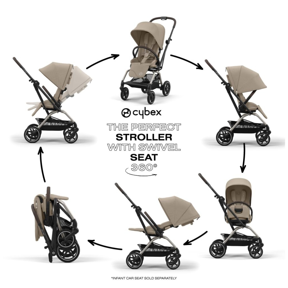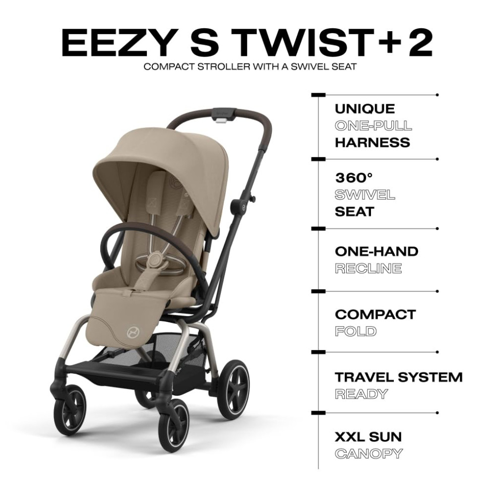 Carrinho de Bebê com Assento Giratório 360º e Compatível com Assentos de Carro CYBEX Eezy S Twist +2 V2 Bege