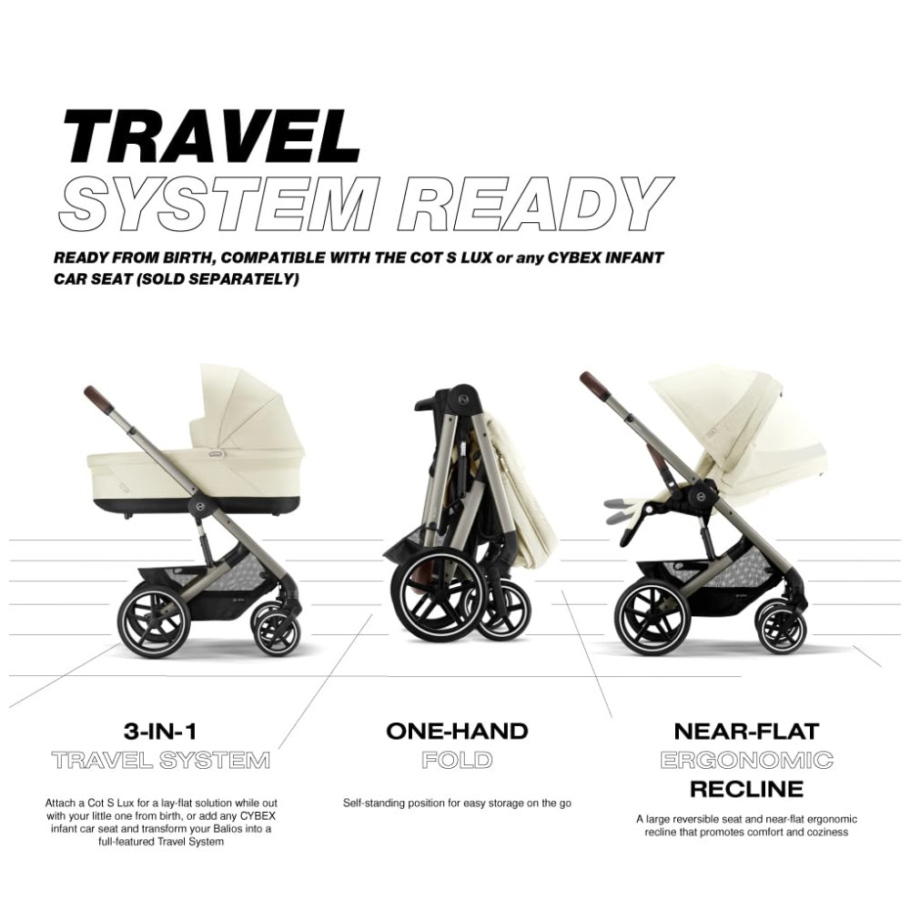 Carrinho de Bebê com Assento Reversível Arnês de Um Puxão e Reclinação Múltipla Cybex Balios S Lux Bege
