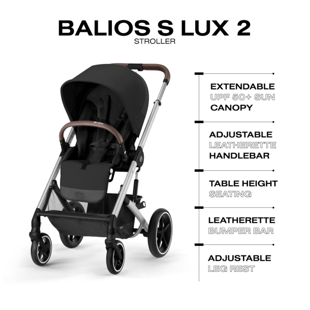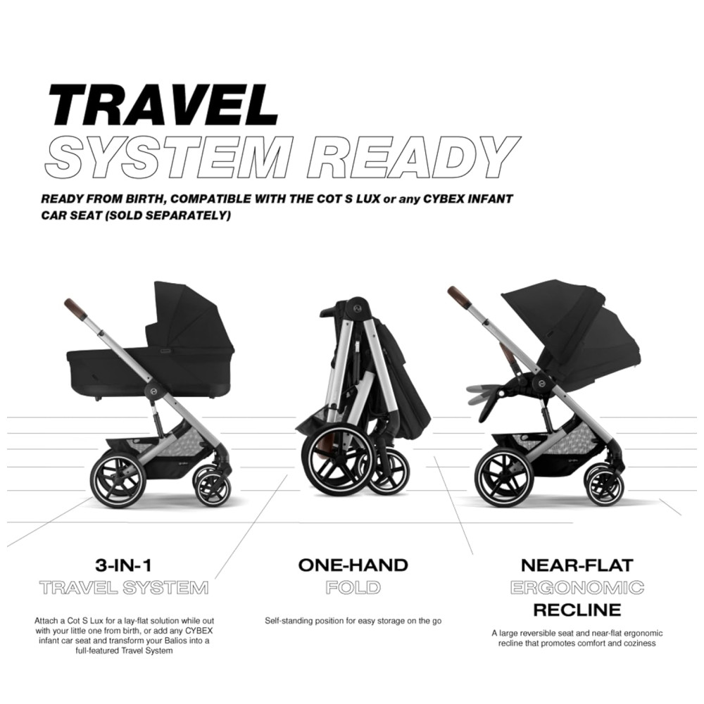 O carrinho de bebê CYBEX Balios S Lux 2 é um excelente companheiro para suas aventuras com seu filho. Compatível com o berço de viagem Cot S Lux 2 ou qualquer assento infantil CYBEX vendido separadamente, ele oferece um sistema de viagem versátil e conveniente. As rodas todo o terreno e a suspensão dianteira garantem um passeio suave em várias superfícies.