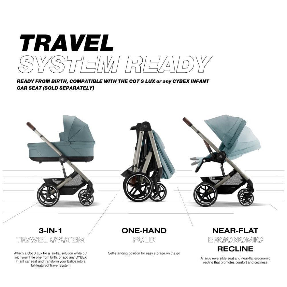 Carrinho de Bebê com Assento Reversível Inclinação Múltipla Cybex Balios S Lux Azul