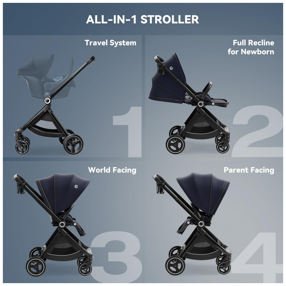 Carrinho de Bebê com Assento Reversível para 0 a 36 Meses ELITTLE Azul