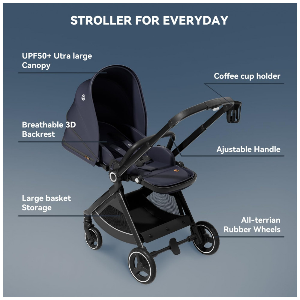 Stroller atencioso O carrinho vem equipado com recursos como alças ajustáveis, freios ativados por pés e rodas giratórias com trava para aumentar ainda mais o conforto e a segurança. Nossos pneus de tamanho grande e absorção de choque tornam o carrinho de viagem suave e em qualquer terreno superior. É ótimo para viagens e também para uso diário. O dossel extensível possui 3 painéis para uma fantástica proteção UV.