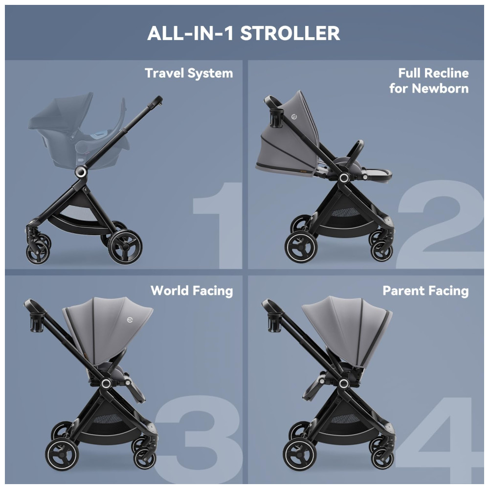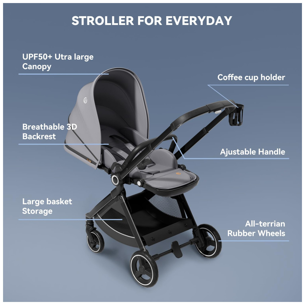 Carrinho de Bebê com Assento Reversível para 0 a 36 Meses ELITTLE Cinza