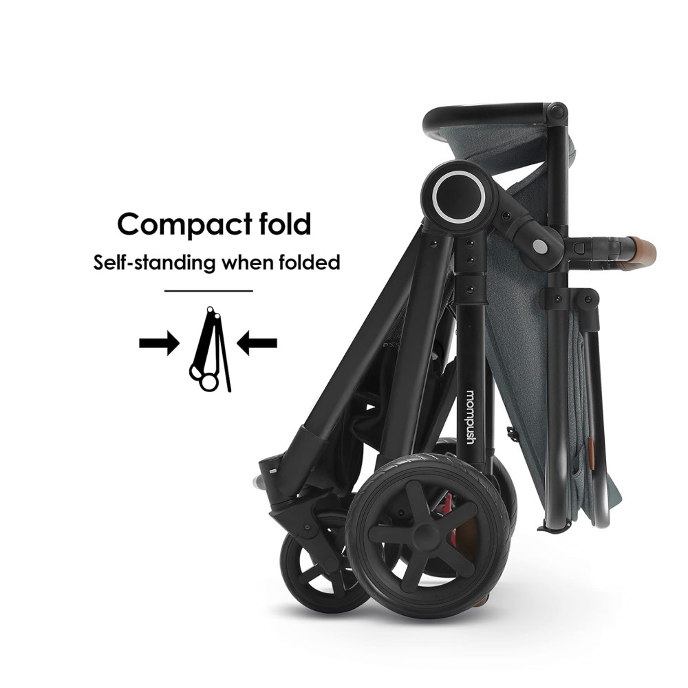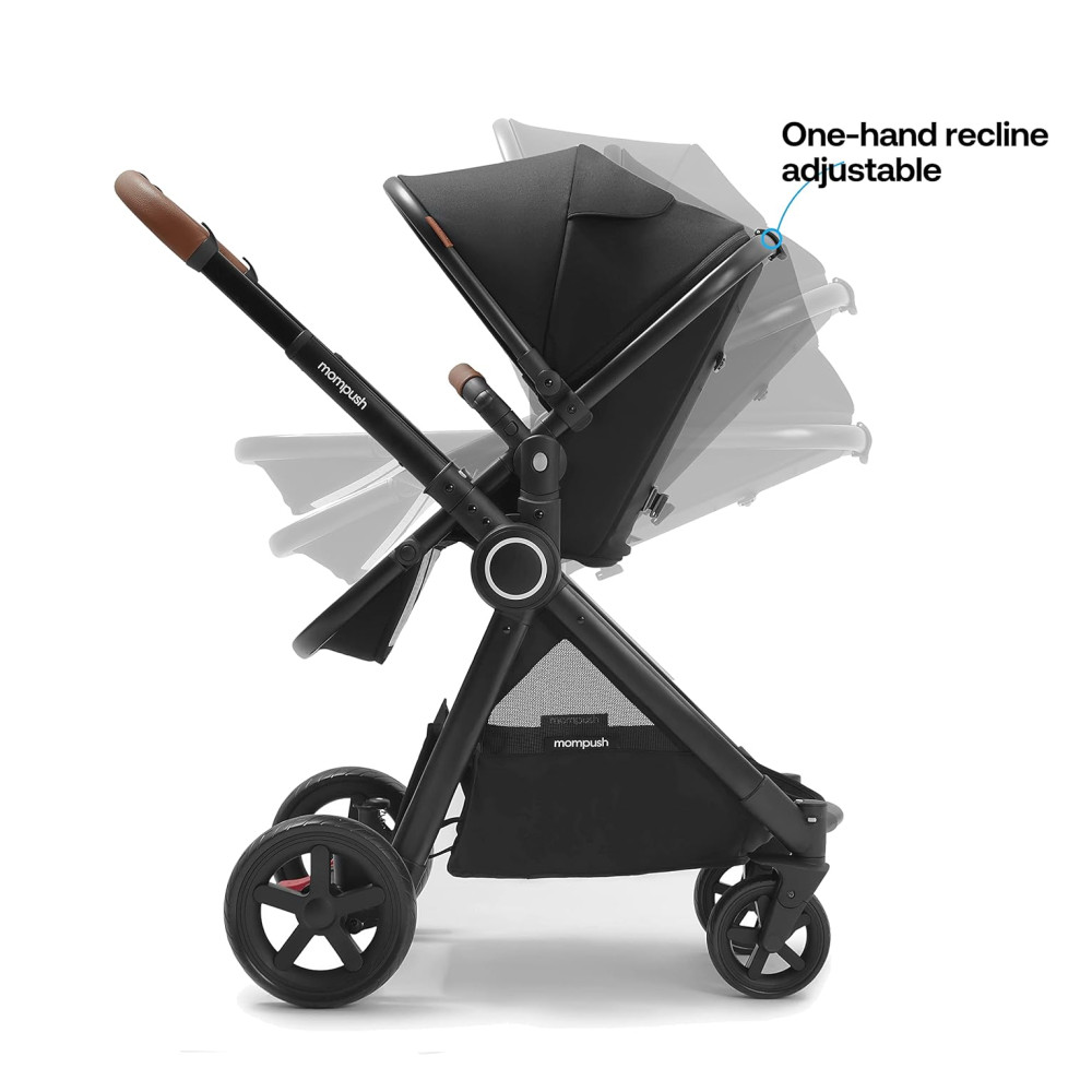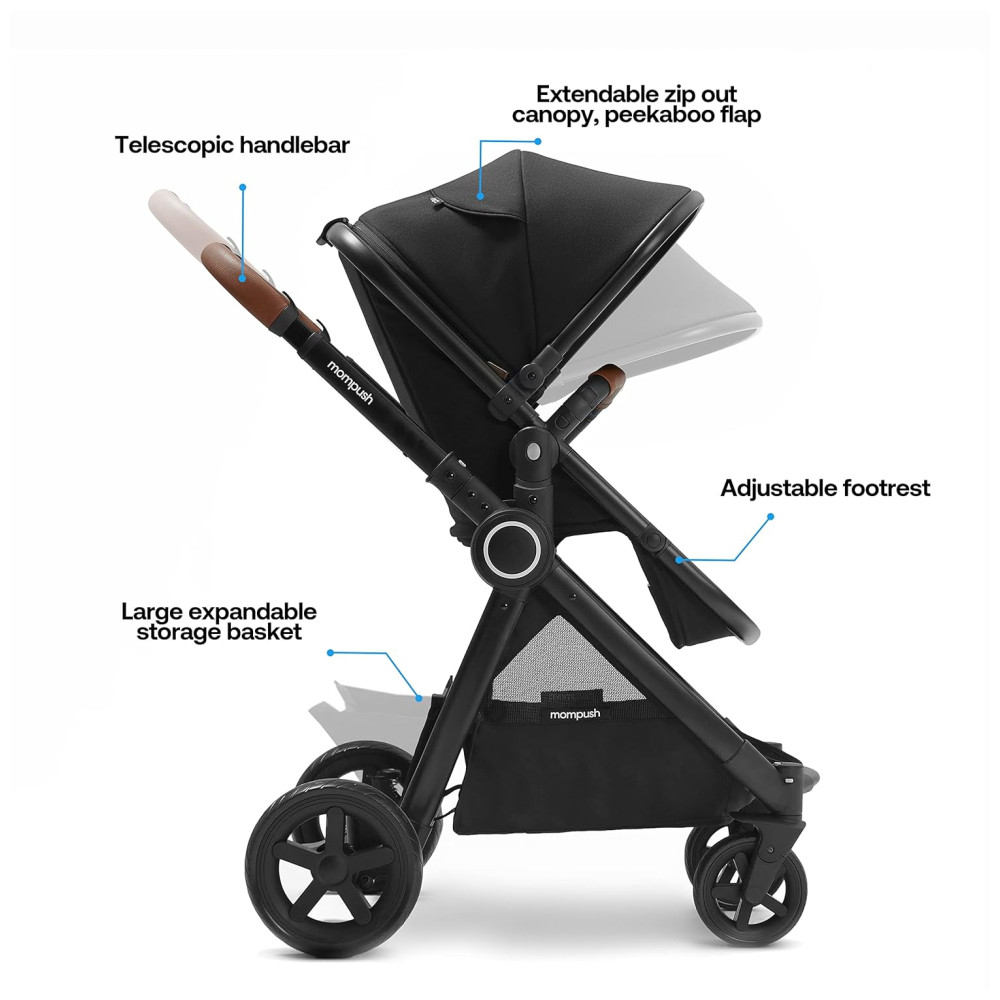 Carrinho de Bebê com Berço Portátil Removível e Assento Reversível Mompush Preto
