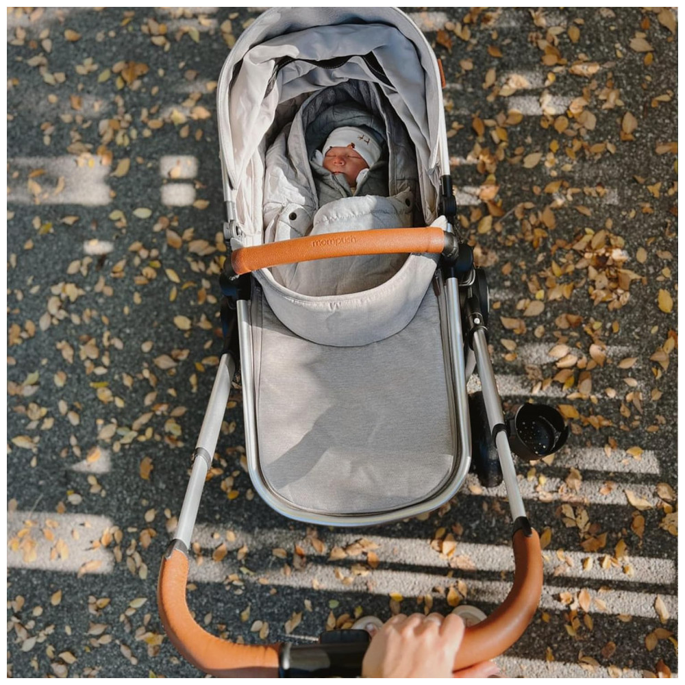 Para famílias em movimento A alça telescópica de couro sintético oferece um ajuste confortável para todos os pais. Quando é hora de voltar para casa, o carrinho de bebê se dobra em uma etapa e fica de forma independente, com ou sem o assento do bebê preso. Isso facilita o ajuste da estrutura de metal leve no veículo