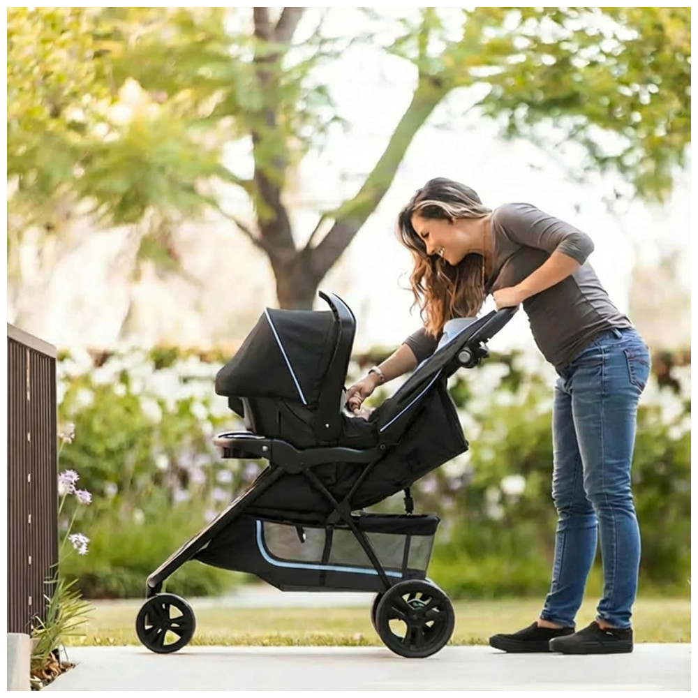 Carrinho de Bebê com Cadeira para Carro Baby Trend EZ Ride com Posição de Reclinação Ajustáveis Preto