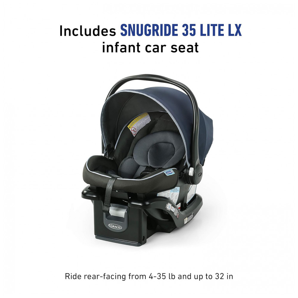 Inclui o assento de carro infantil Graco SnugRide 35 Lite LX, voltado para trás para bebês de 2 a 15 kg e até para uma transição fácil do carro para o carrinho