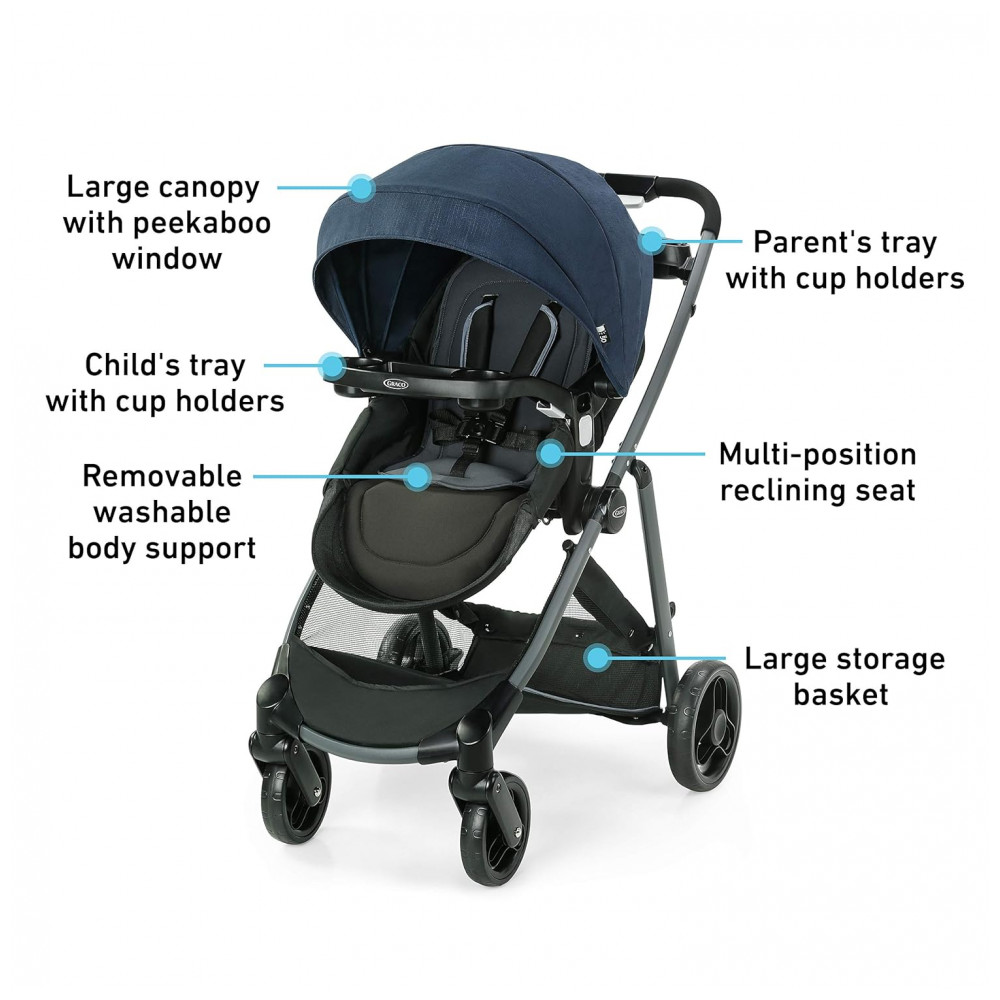 Carrinho de Bebê com Cadeira para Carro com Assento Reversível Graco Modes Element Azul