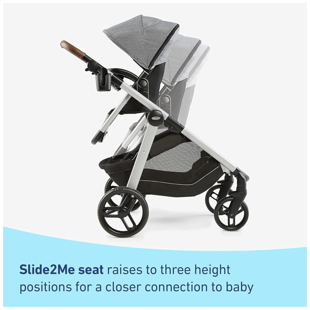 Desfrute de sorrisos cara a cara, elevando o assento Slide2Me ou o assento infantil para uma das 3 posições de altura para encontrar o passeio certo