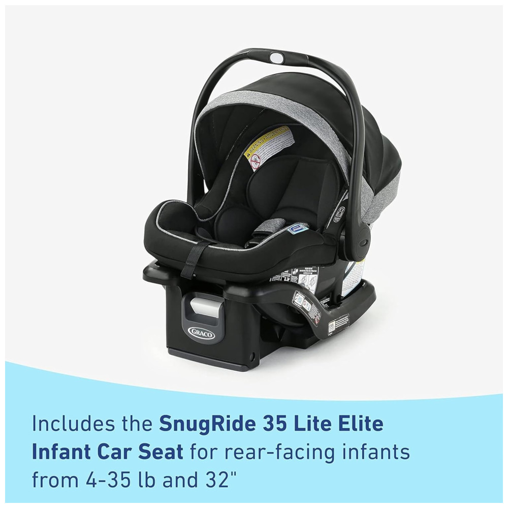 Inclui o assento de carro infantil Graco SnugRide 35 Lite Elite, voltado para trás para bebês de 2 a 15 e até para uma transição fácil do carro para o carrinho