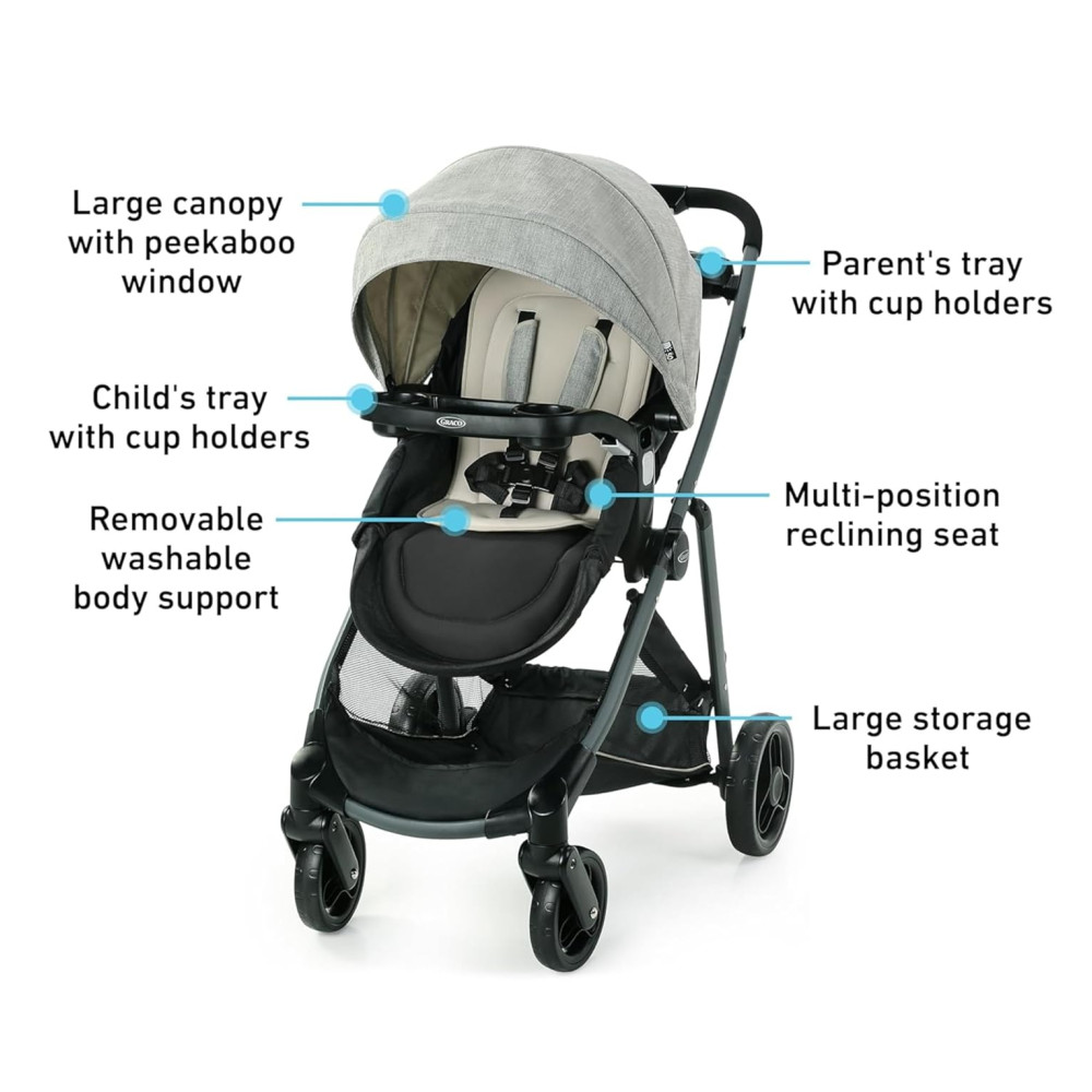 Carrinho de Bebê com Cadeira para Carro Graco Modes Element LX Cinza