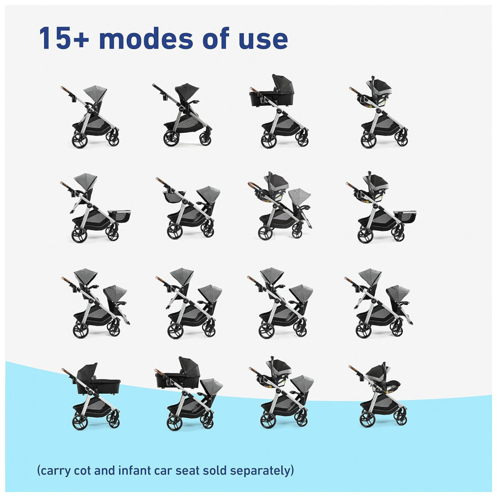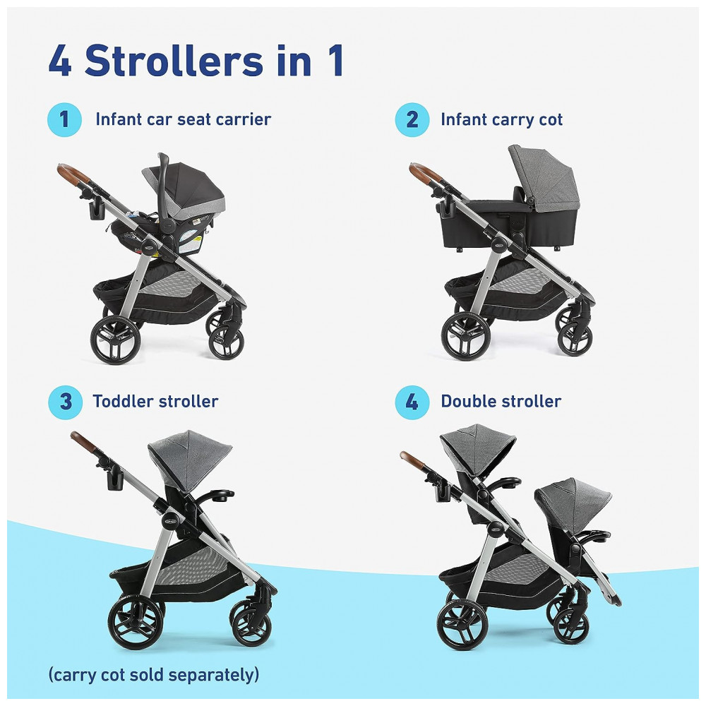 Adicione o Graco Modes Carry Cot ou o Graco Modes Nest2Grow Second Seat cada um vendido separadamente para um carrinho duplo instantâneo para recém nascidos e crianças