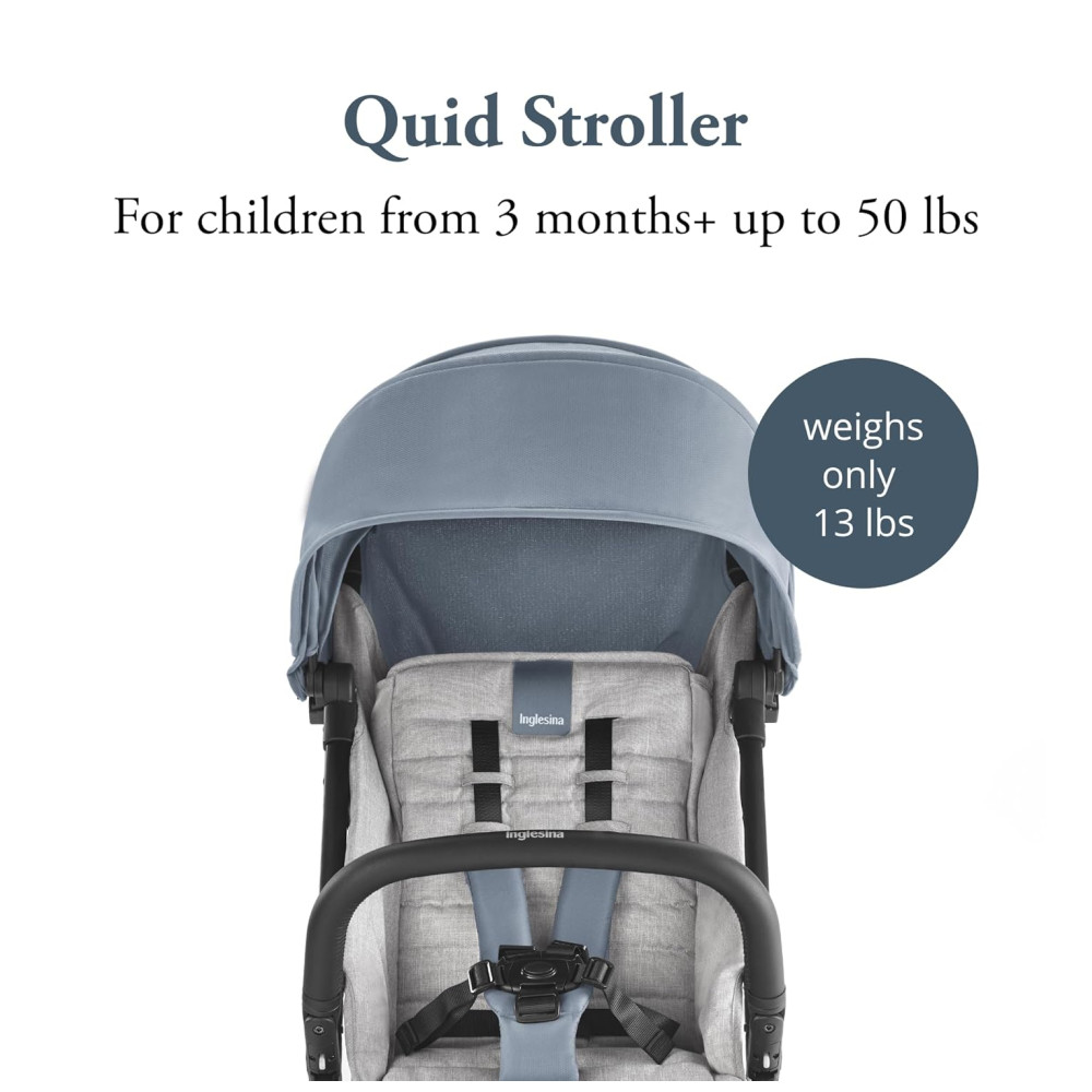 Carrinho de Bebê Compacto com Assento Acolchoado Reclinação em Várias Posições e Apoio para as Pernas Ajustável Inglesina Quid Azul Claro