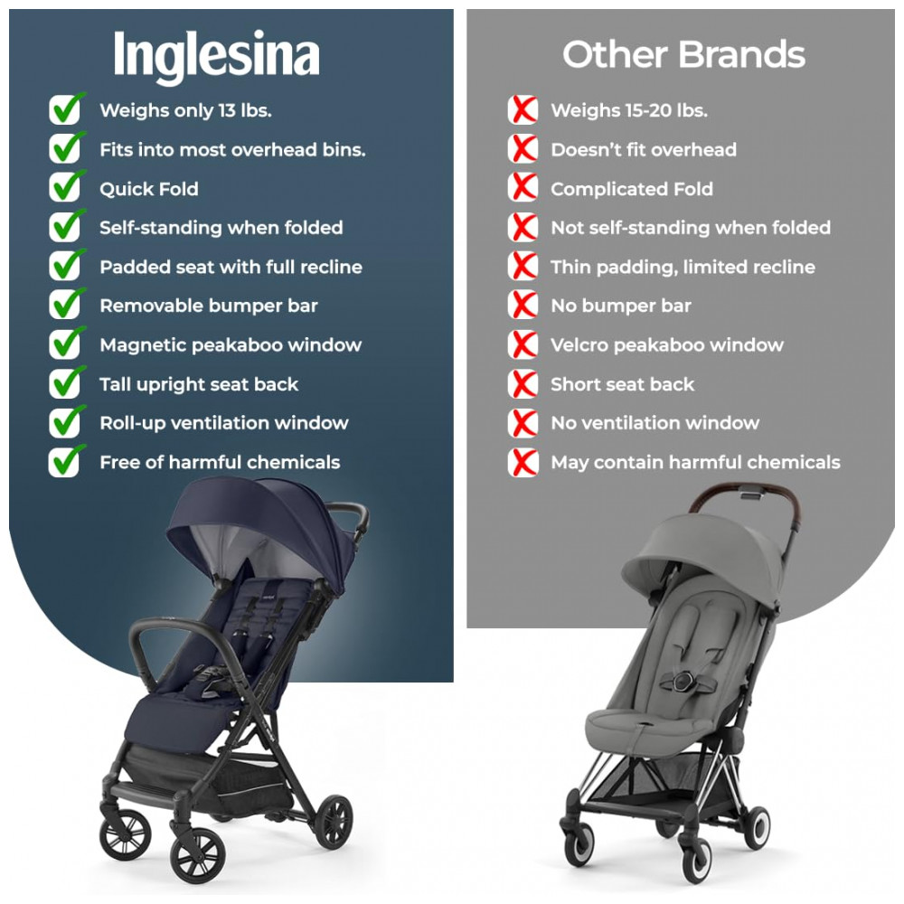 Inglesina é uma marca italiana líder em artigos premium para bebês desde 1963, fabricando carrinhos de bebê, cadeiras altas e cadeiras de mesa de alta qualidade. O carrinho portátil Quid é o carrinho definitivo para uso de bebês e crianças pequenas, com design ultracompacto que não compromete o conforto. Com tecnologia avançada de design italiano, este carrinho de viagem leve está equipado com um freio de freio de um toque, rodas dianteiras giratórias traváveis e um sistema de suspensão multiponto.