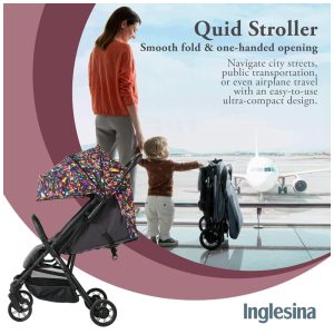 Carrinho de Bebê Compacto com Assento Acolchoado Reclinação em Várias Posições e Apoio para as Pernas Ajustável Inglesina Quid Colorido e Preto